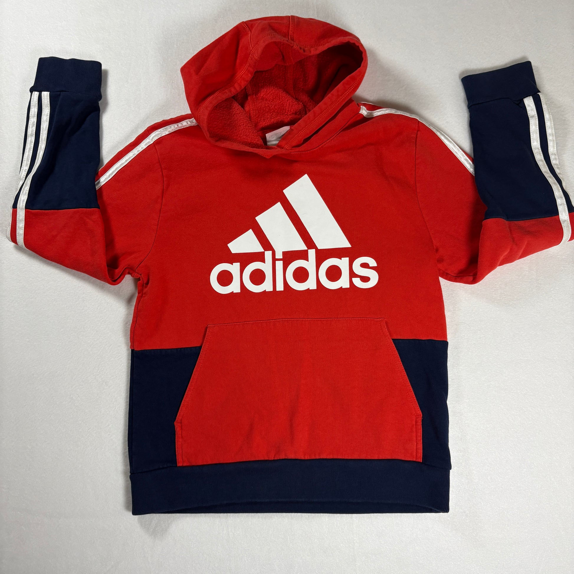 adidas hoodie, kids pullover sweatshirt, red navy hoodie, youth medium 10/12, adidas fleece hoodie, boys girls activewear, sports hoodie