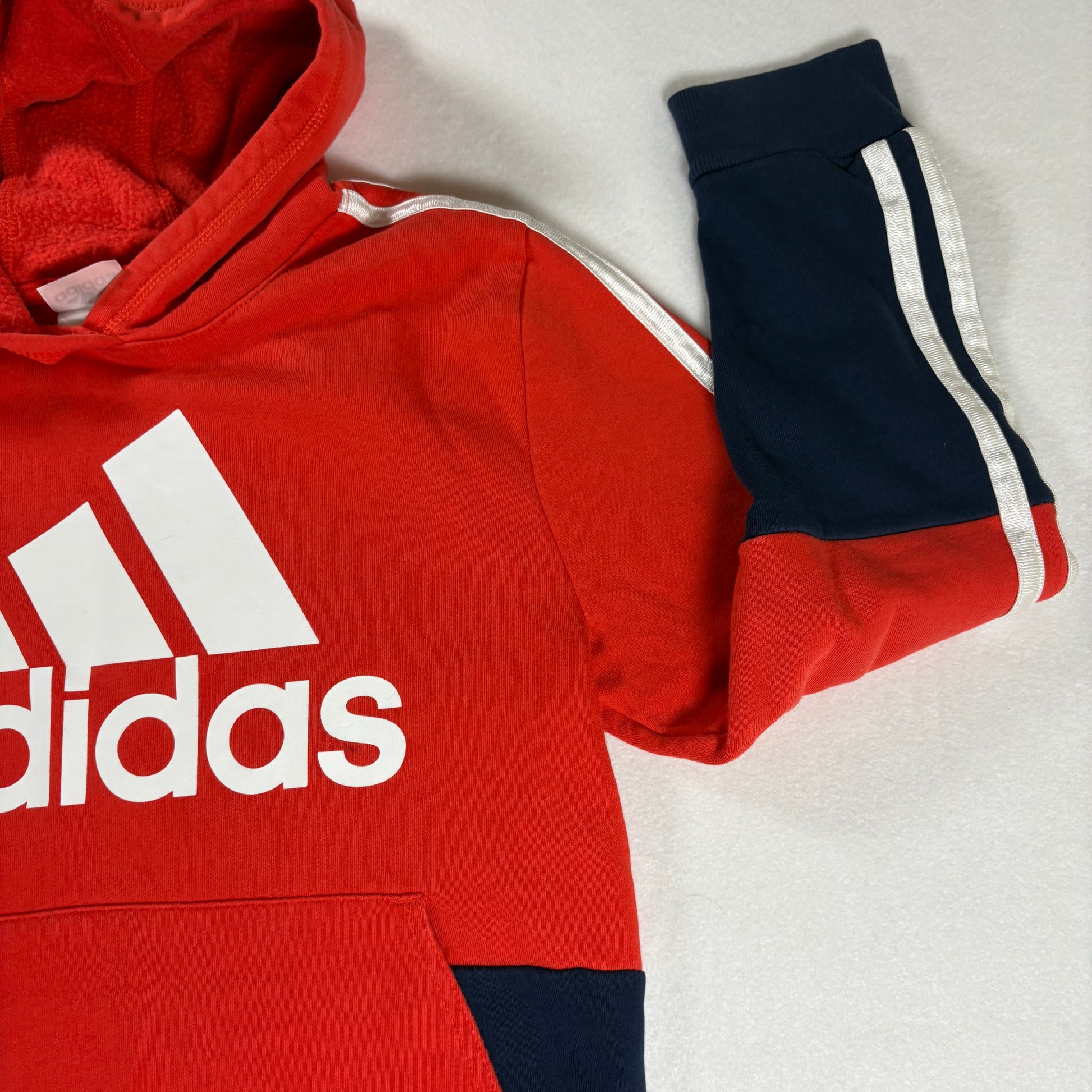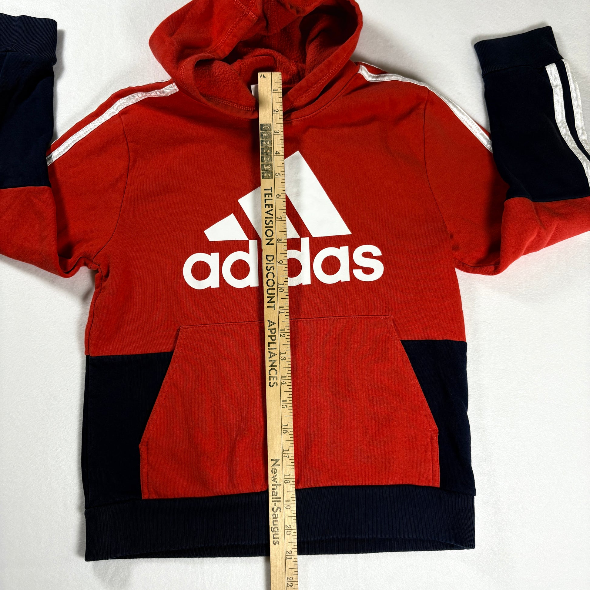 Adidas Kids Hoodie Red Navy Pullover Sweatshirt Logo Medium 10/12