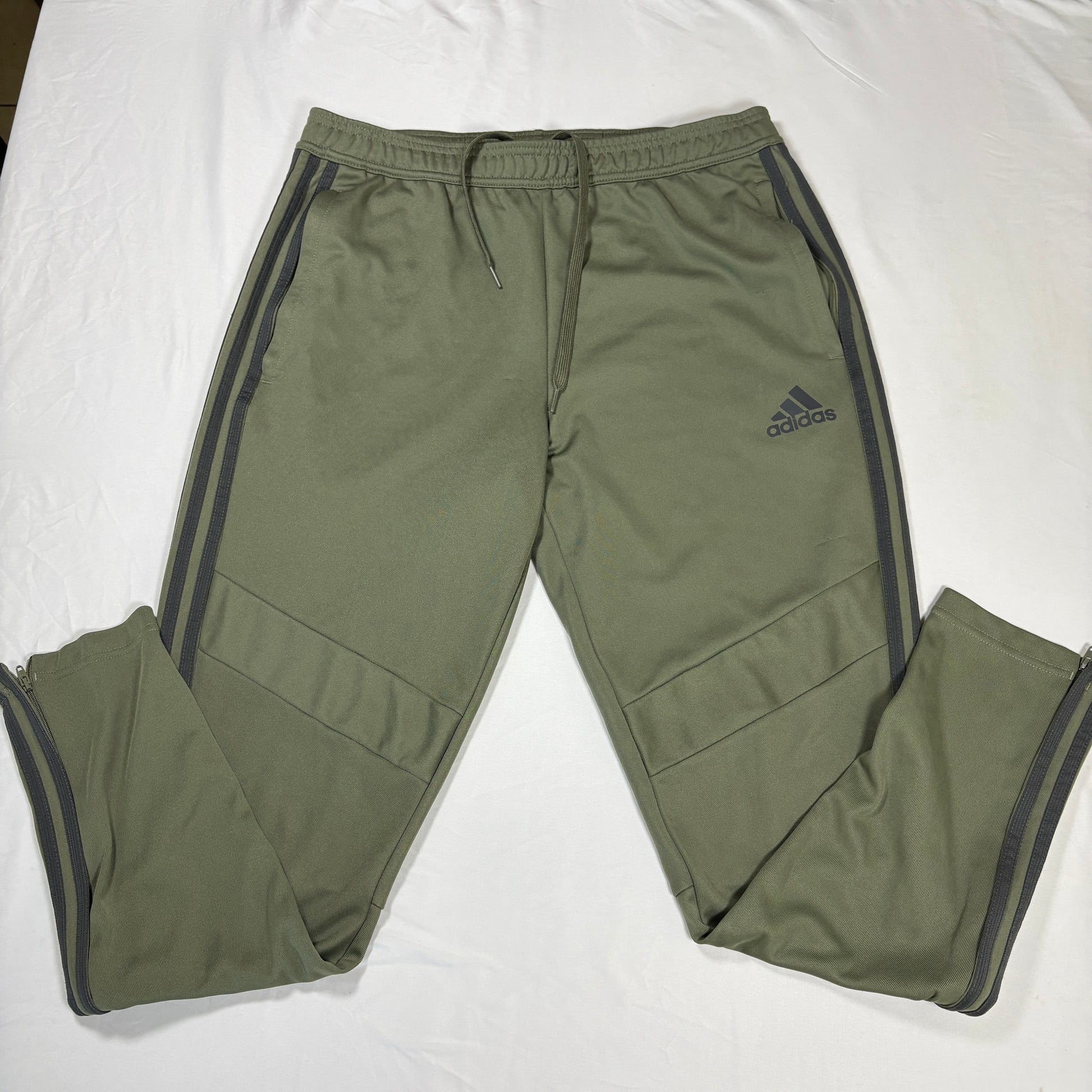 Adidas Men’s L Track Pants Green 3-Stripes Joggers Athletic Training Zip Cuffs