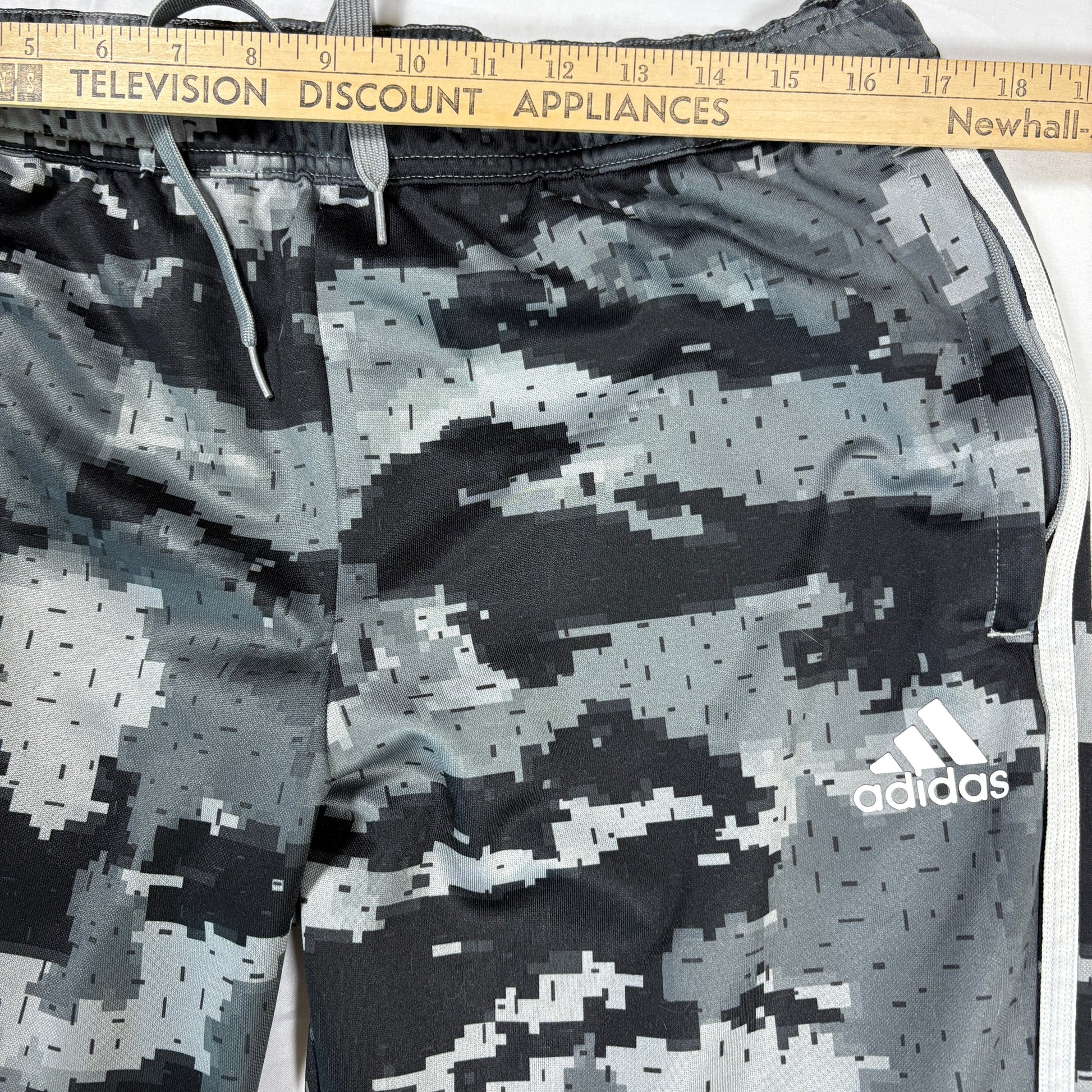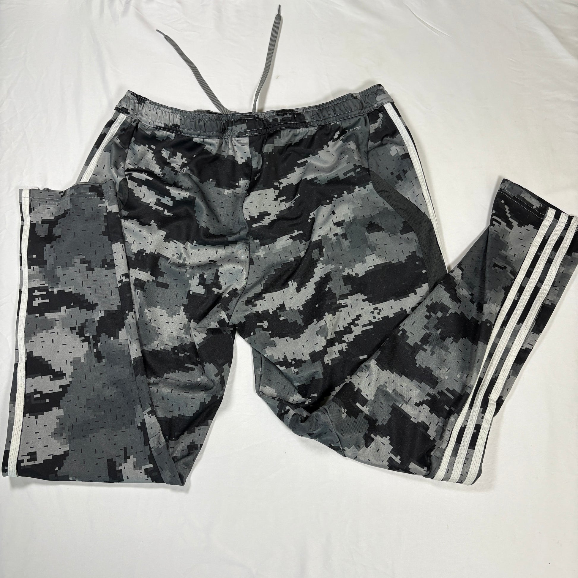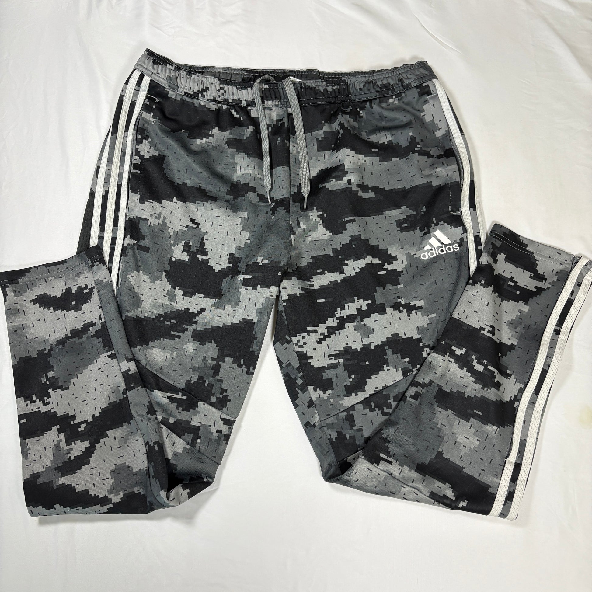 Adidas Men’s XL Track Pants Gray Camo 3-Stripes Joggers Tapered Training