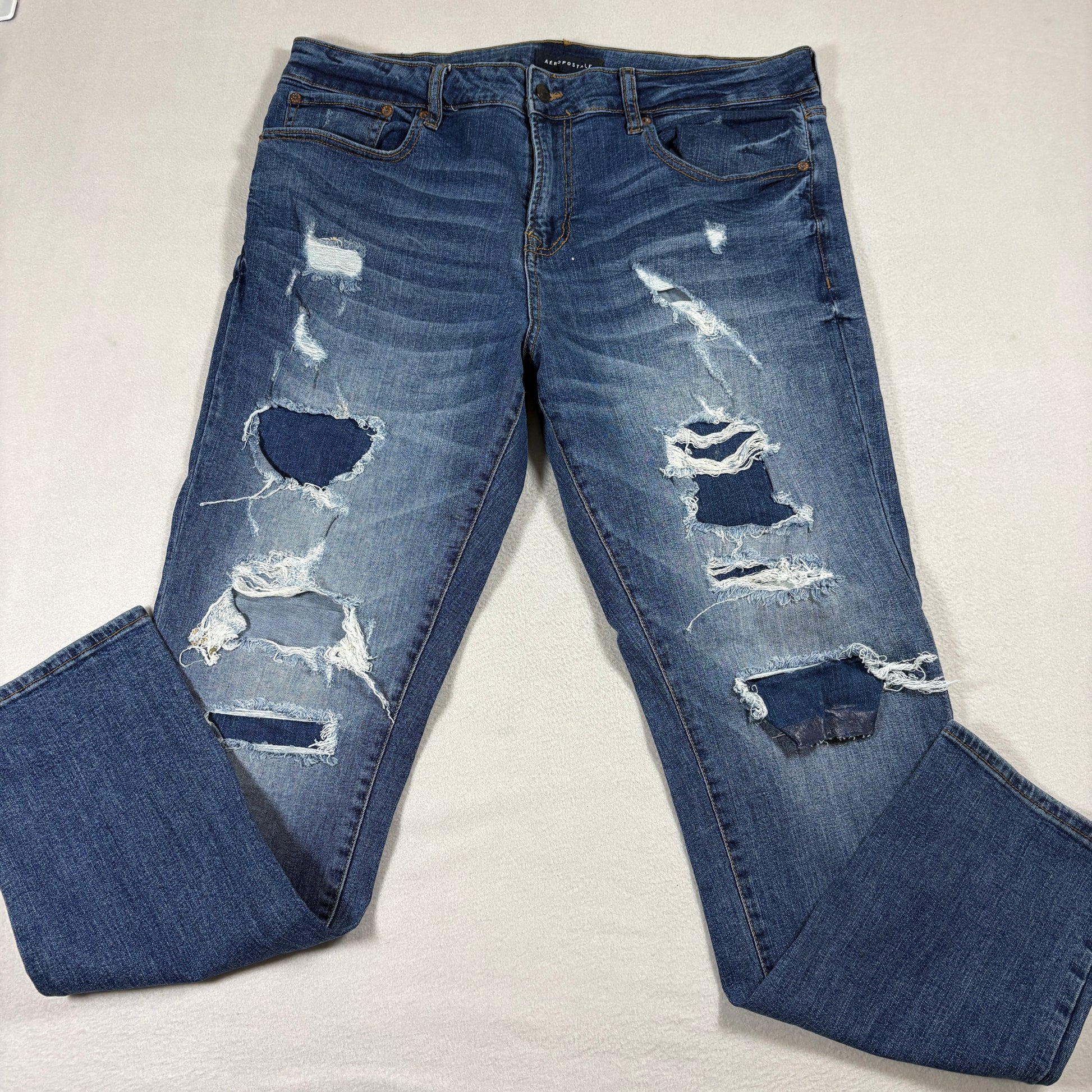 Aeropostale Jeans Mens 34x32 Blue Distressed Athletic Skinny Denim Y2K Grunge