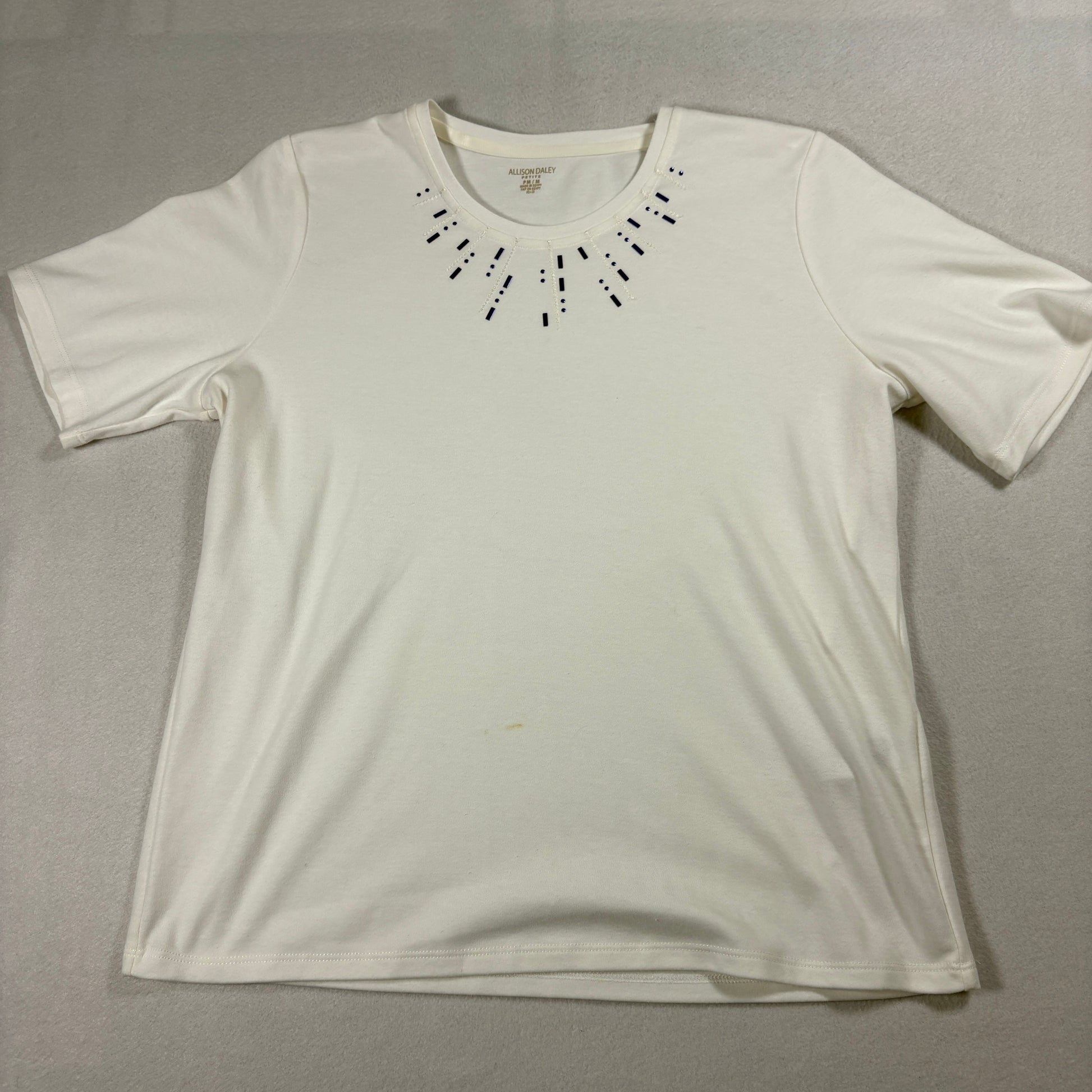 Allison Daley Petite Embellished T Shirt Womens PM Ivory Beaded Neck Casual Tee
