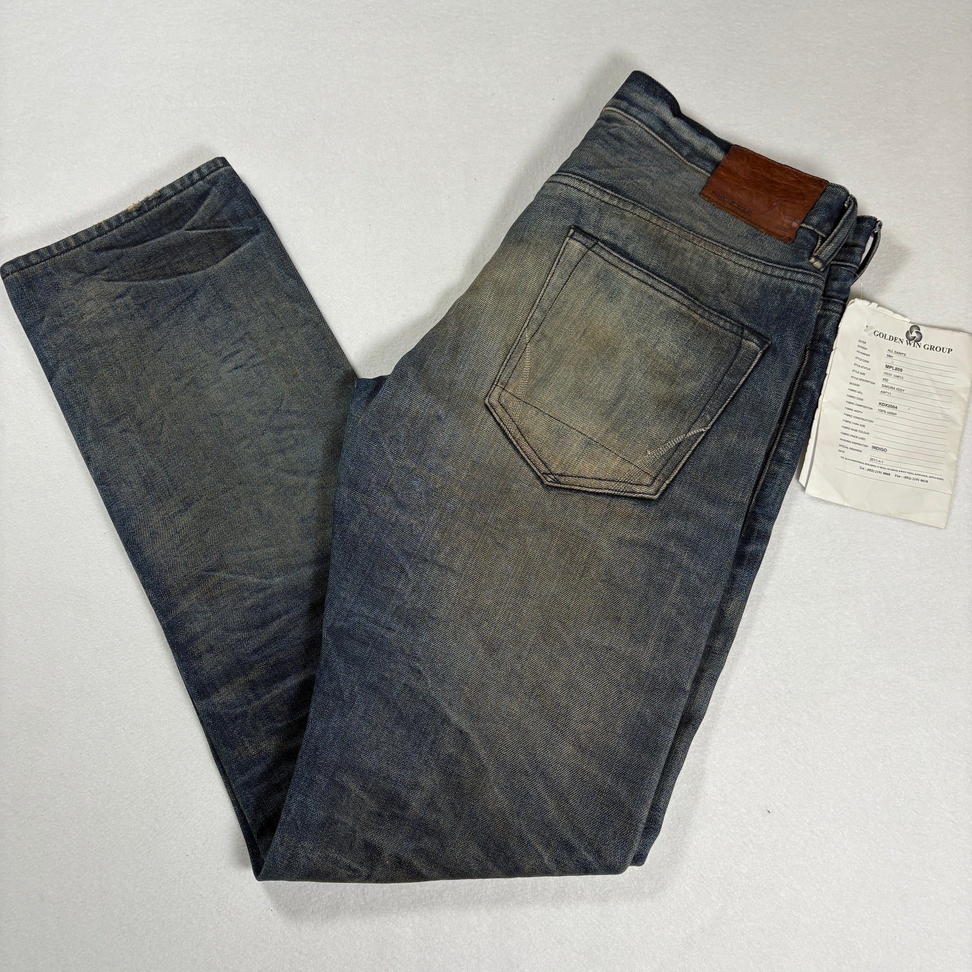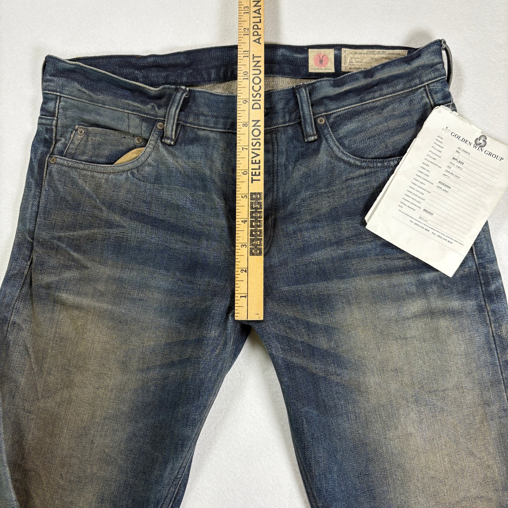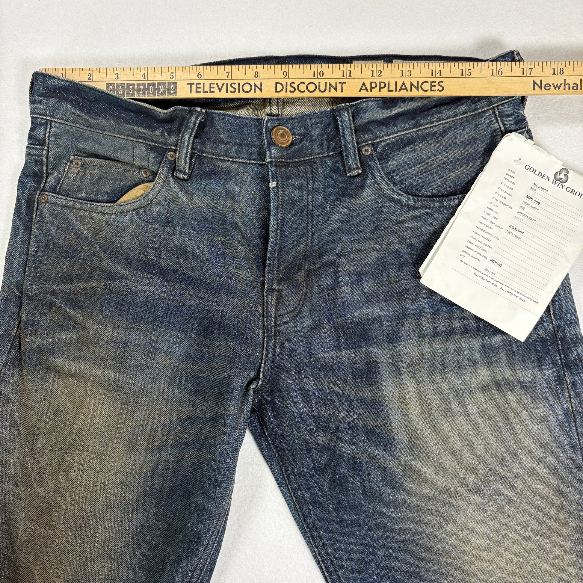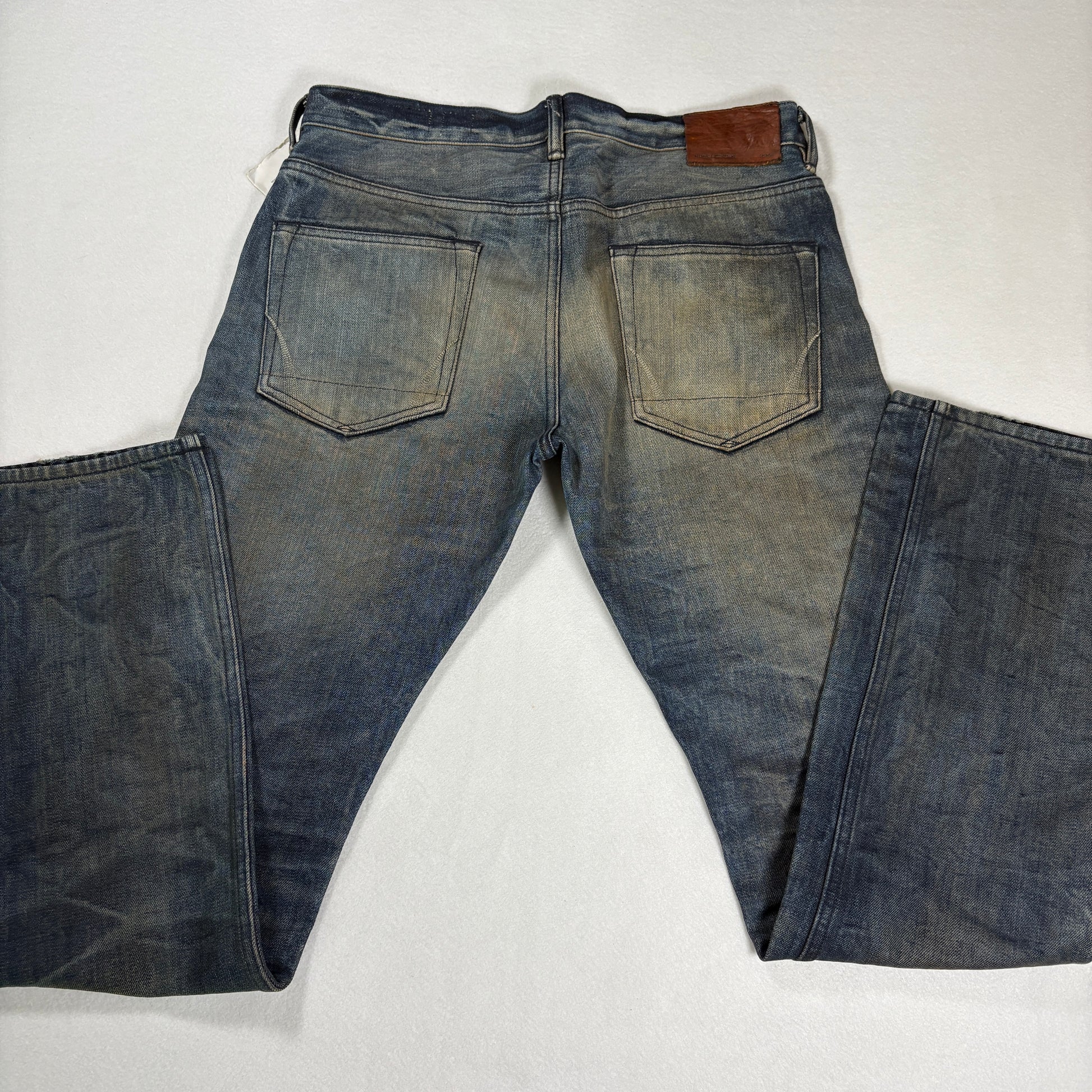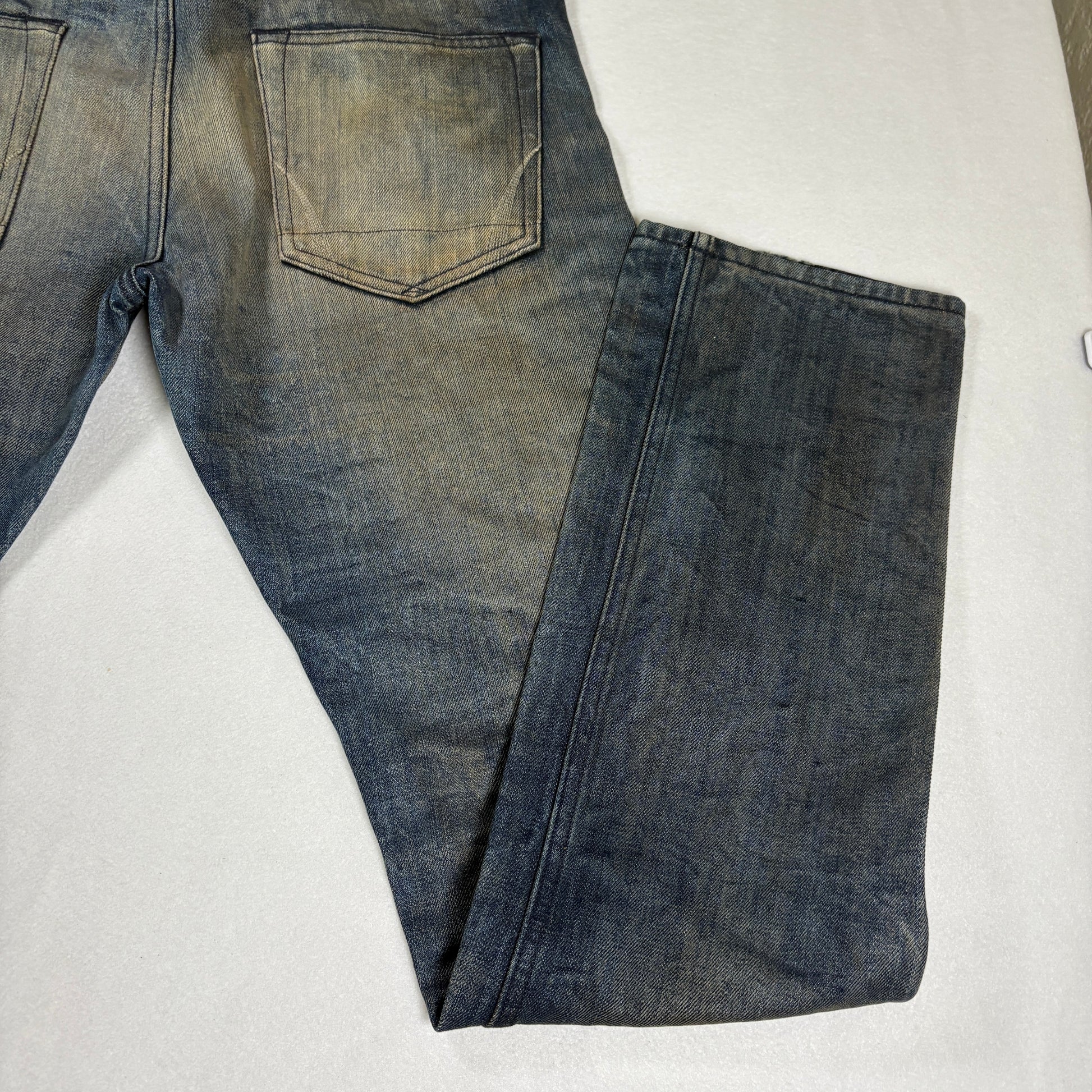 Premium AllSaints Sakura Iggy selvedge jeans crafted from Okayama Japanese denim. Straight leg fit with authentic indigo fade and heritage workwear appeal. NWOT condition makes this a rare collector-level piece for denim enthusiasts.