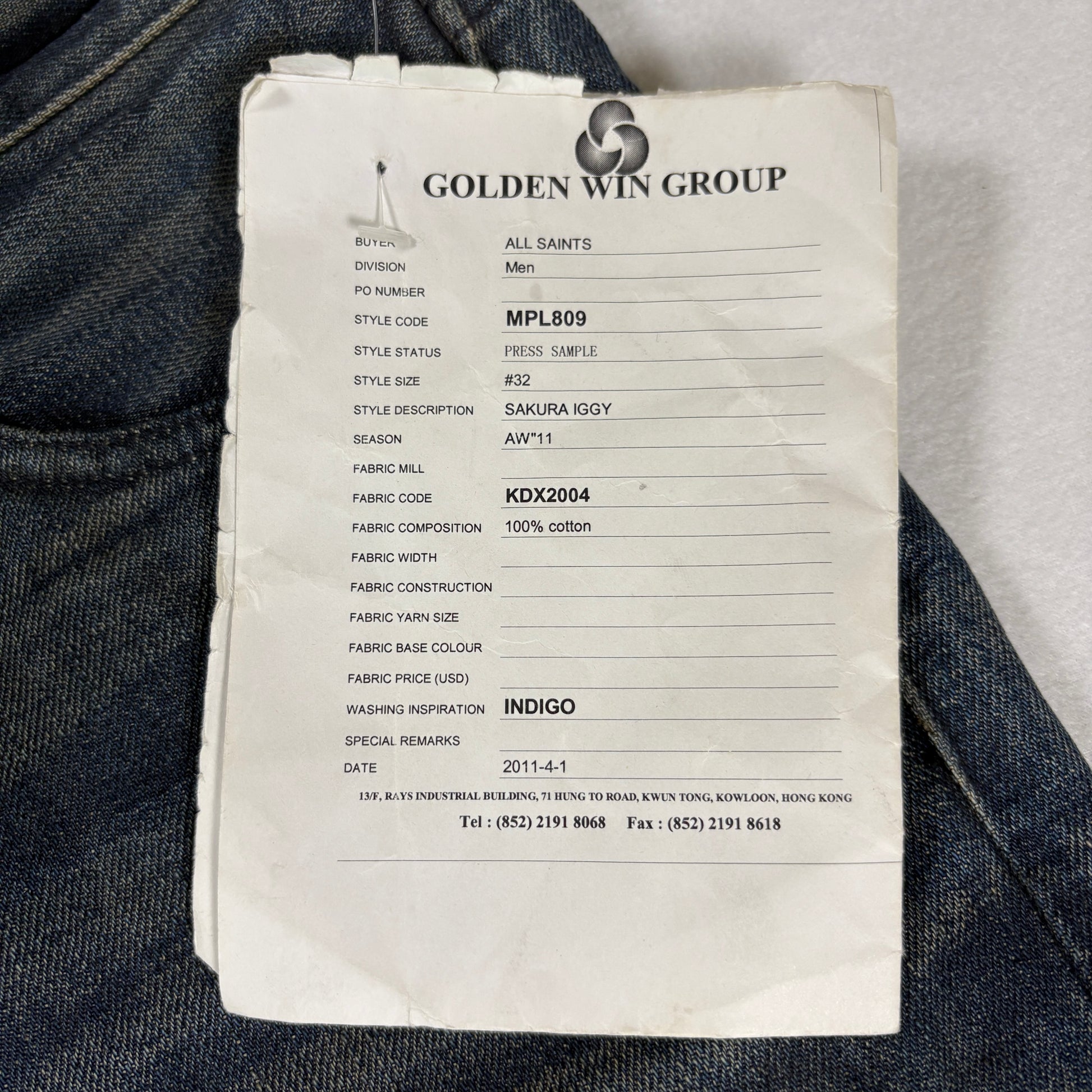 ✓ AllSaints brand, ✓ Mens size 32, ✓ Sakura Iggy model, ✓ Indigo wash, ✓ Straight leg, ✓ Premium Okayama Japan fabric, ✓ 100% cotton, ✓ Selvedge denim, ✓ NWOT – never worn, ✓ Original factory sample tag included.