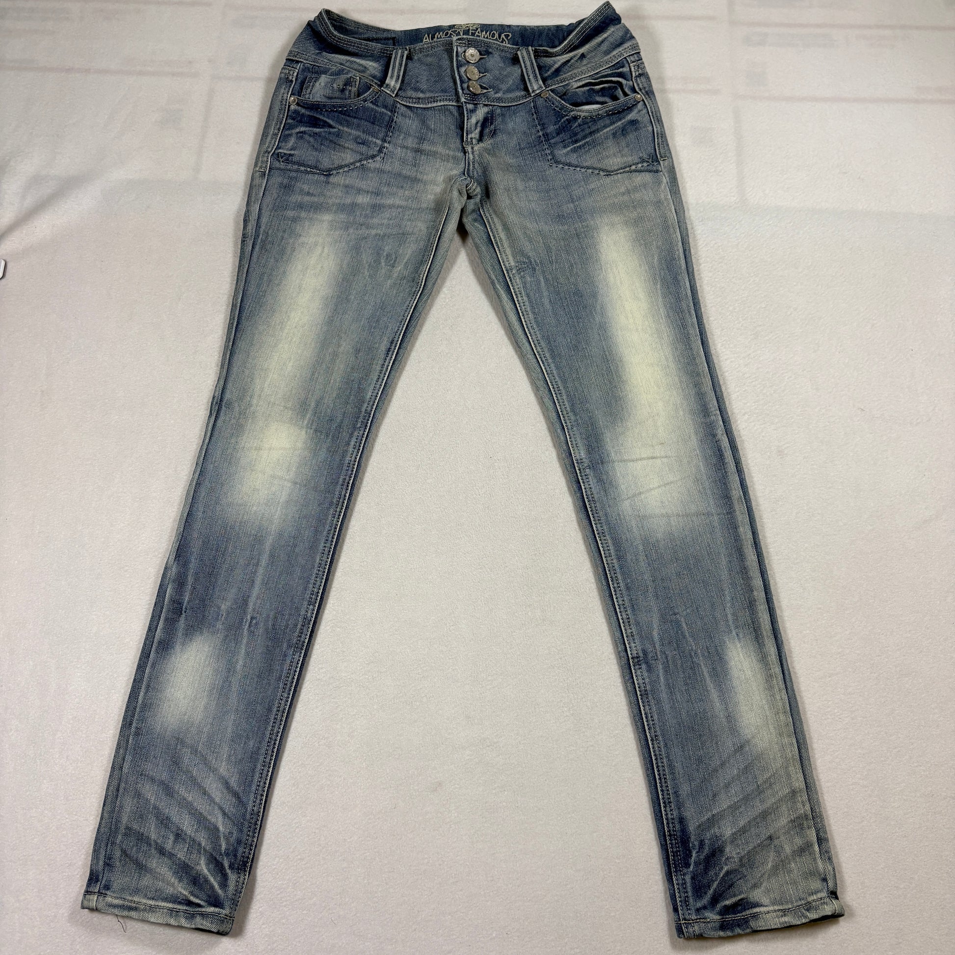 Almost Famous Skinny Jeans Womens 5 Blue High Rise Button Fly Stretch Denim