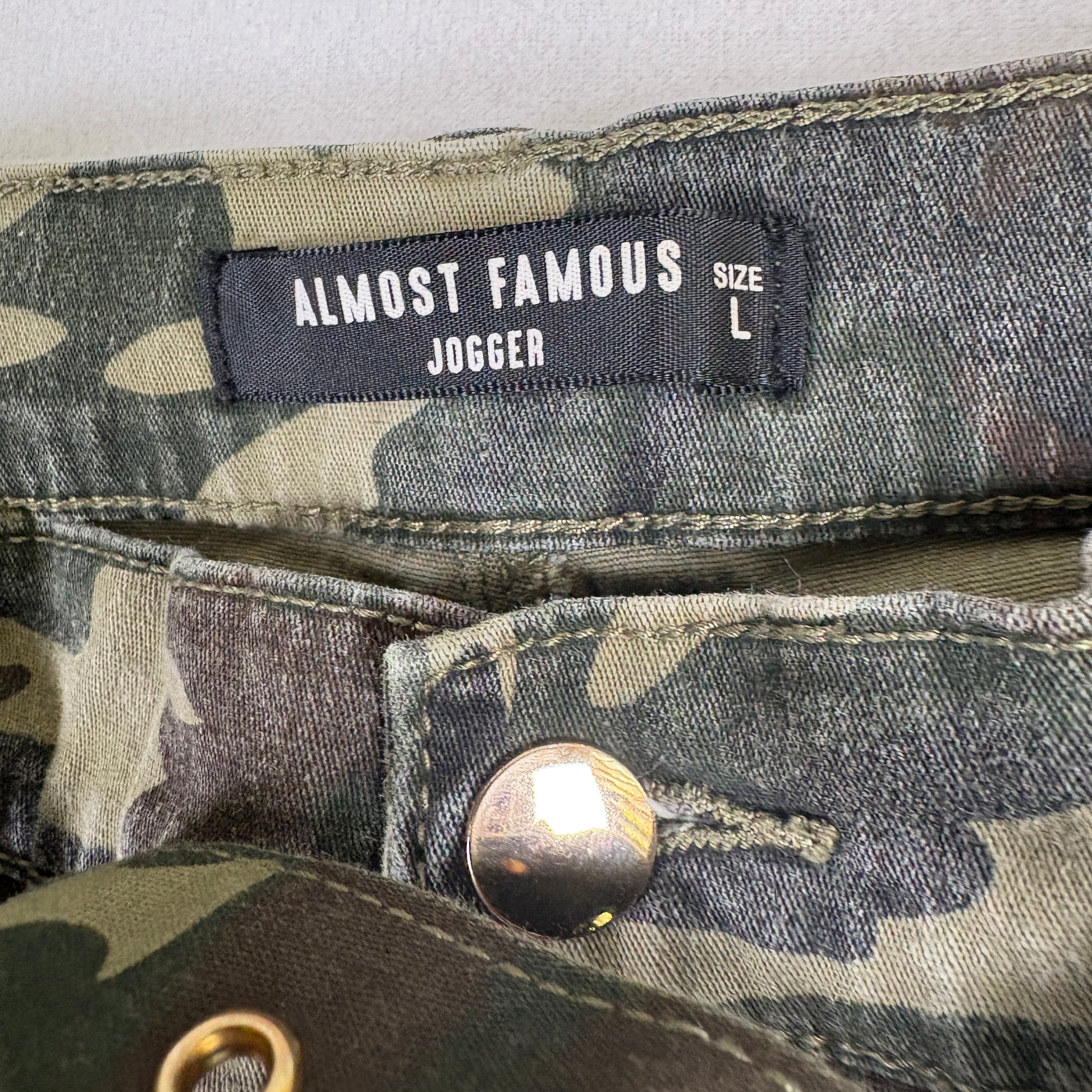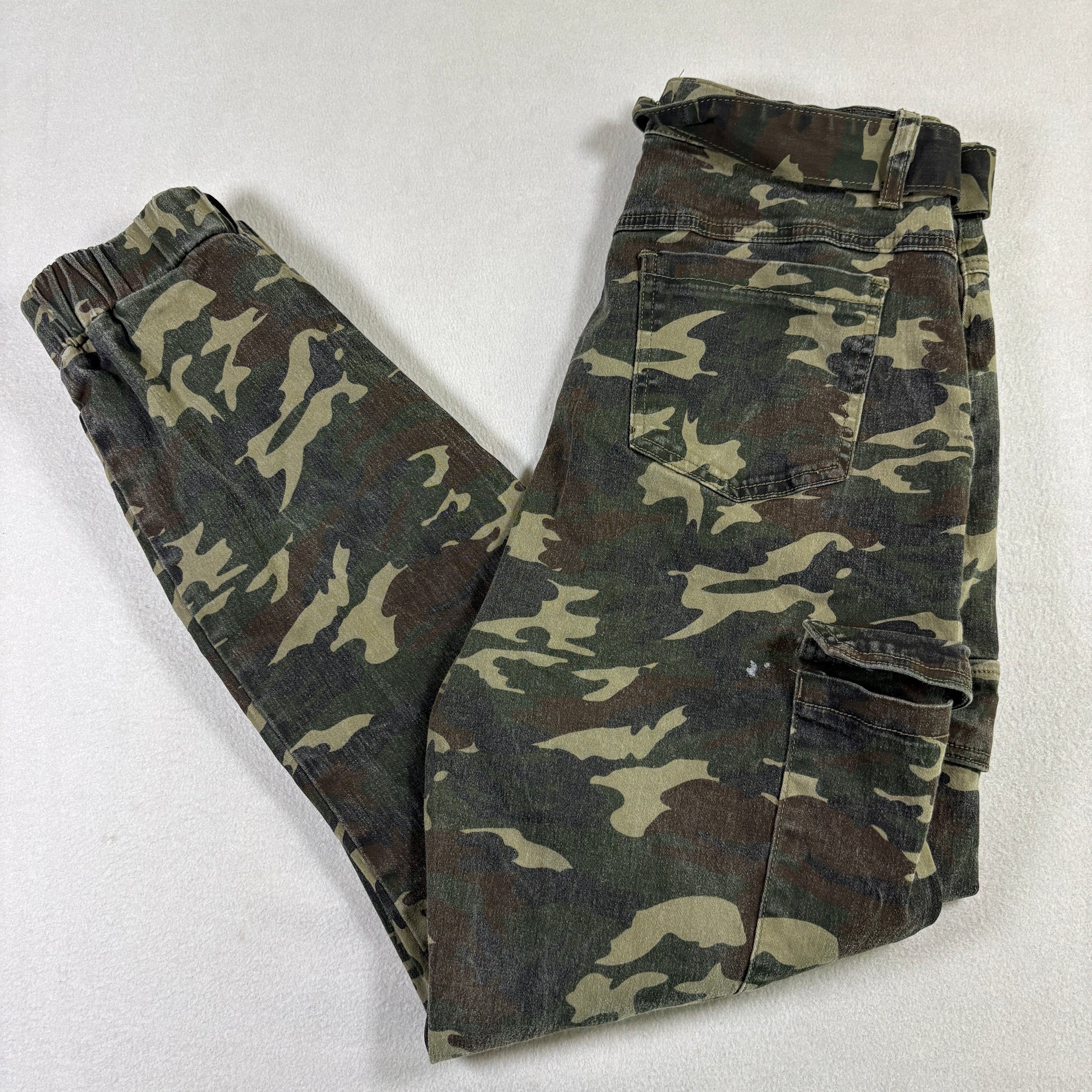 Almost Famous Womens Camo Cargo Joggers L Belted Utility Pants Y2K Grunge