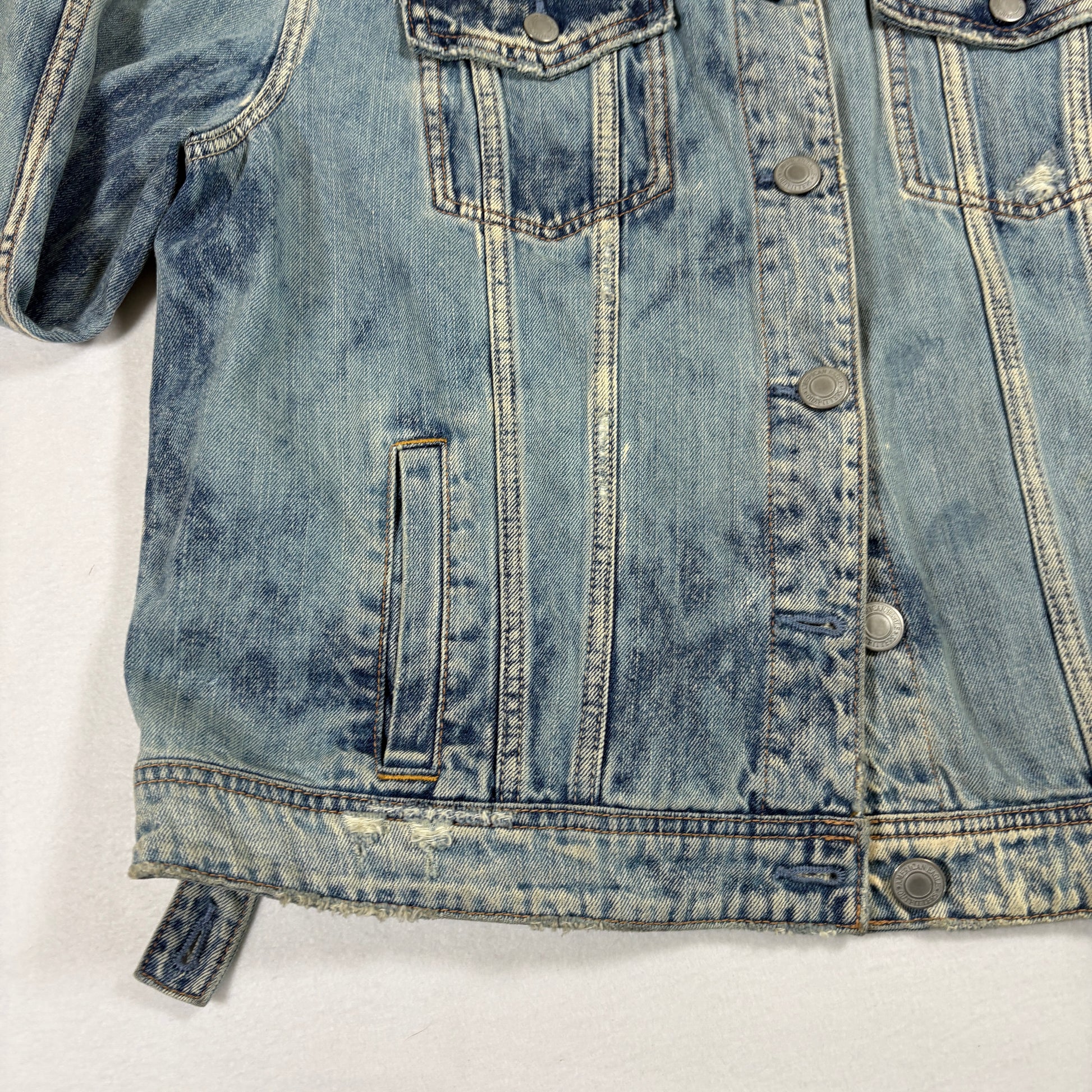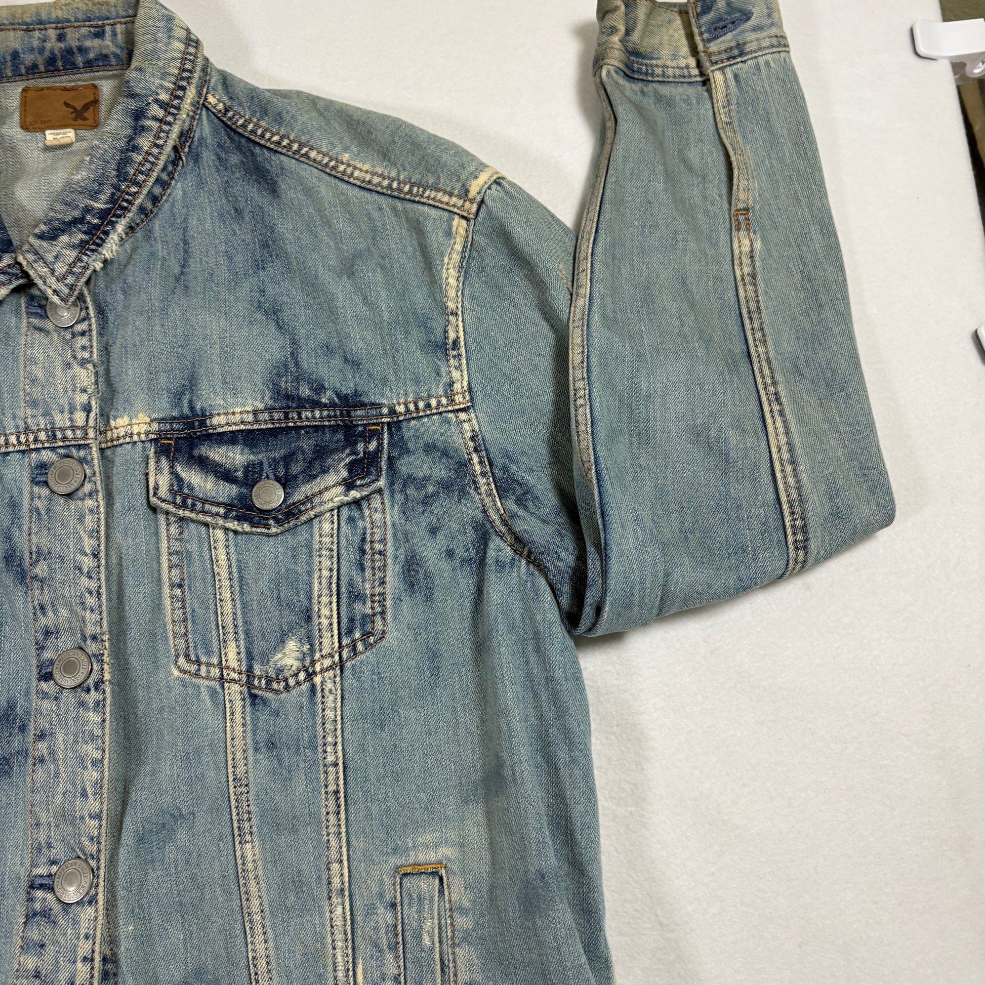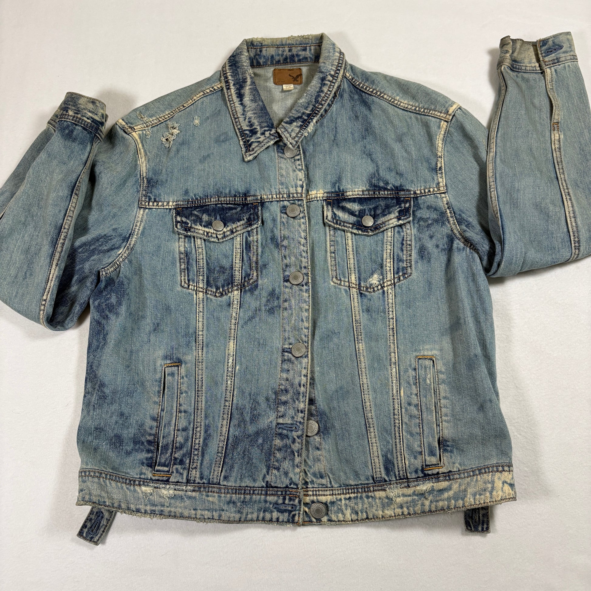 American Eagle Mens Denim Jacket XL Distressed Grunge 90s Y2K Light Wash Cross