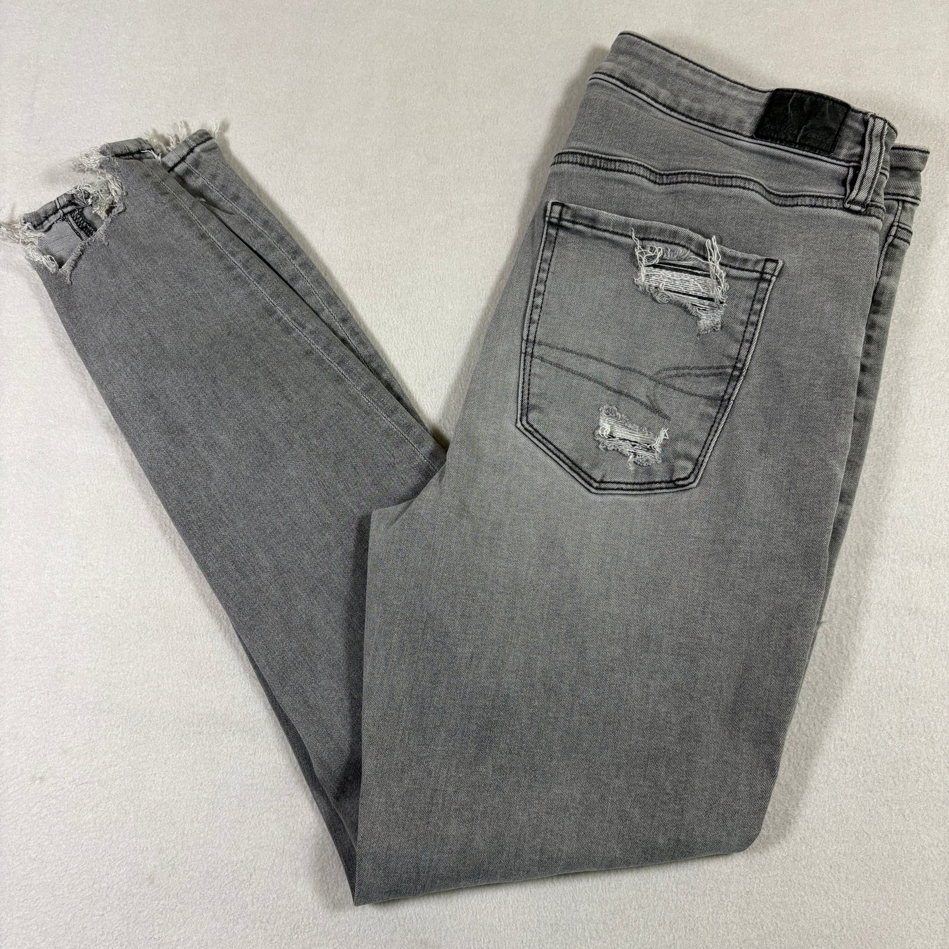 American Eagle Womens Jeans 12 Gray Distressed Next Level Stretch Grunge Y2K