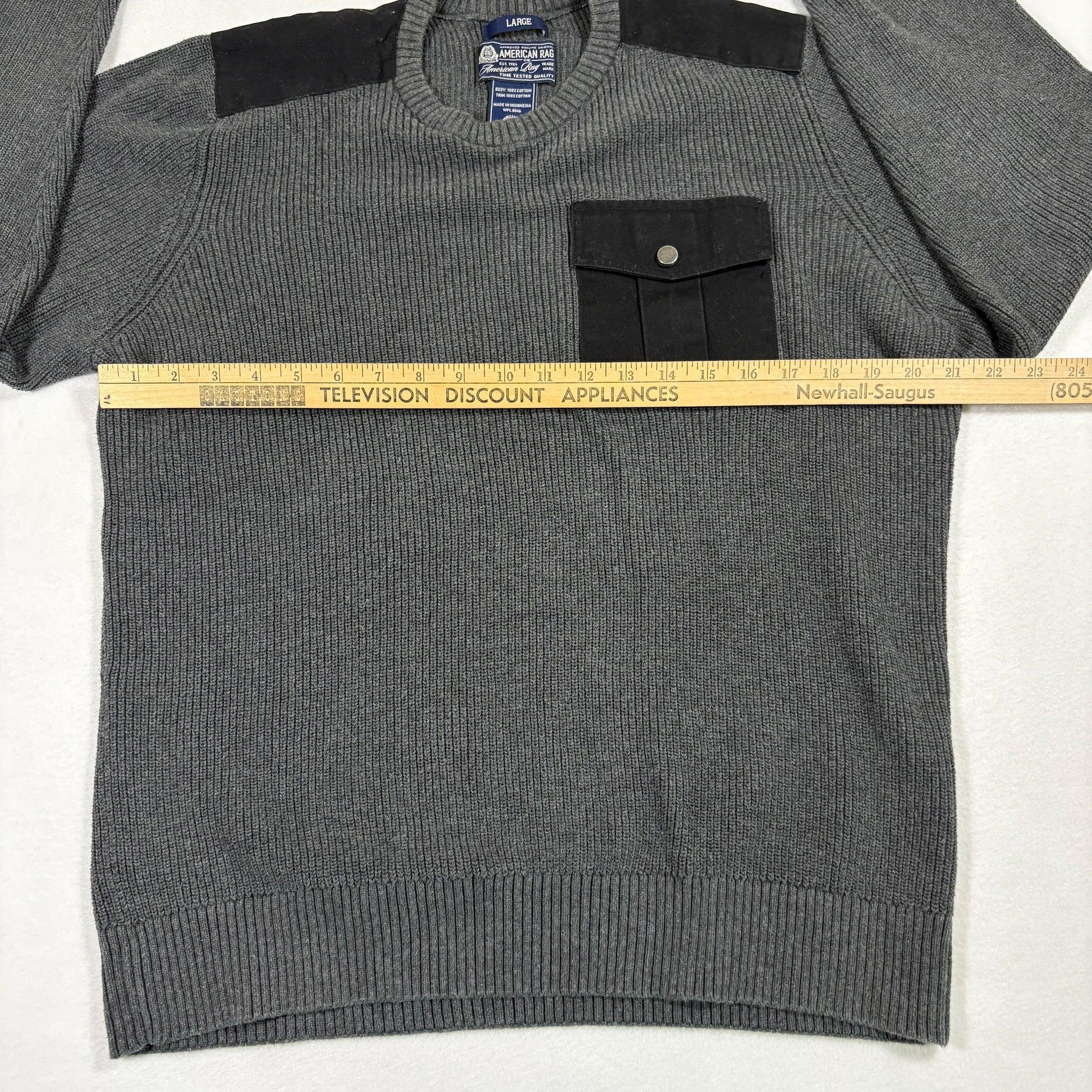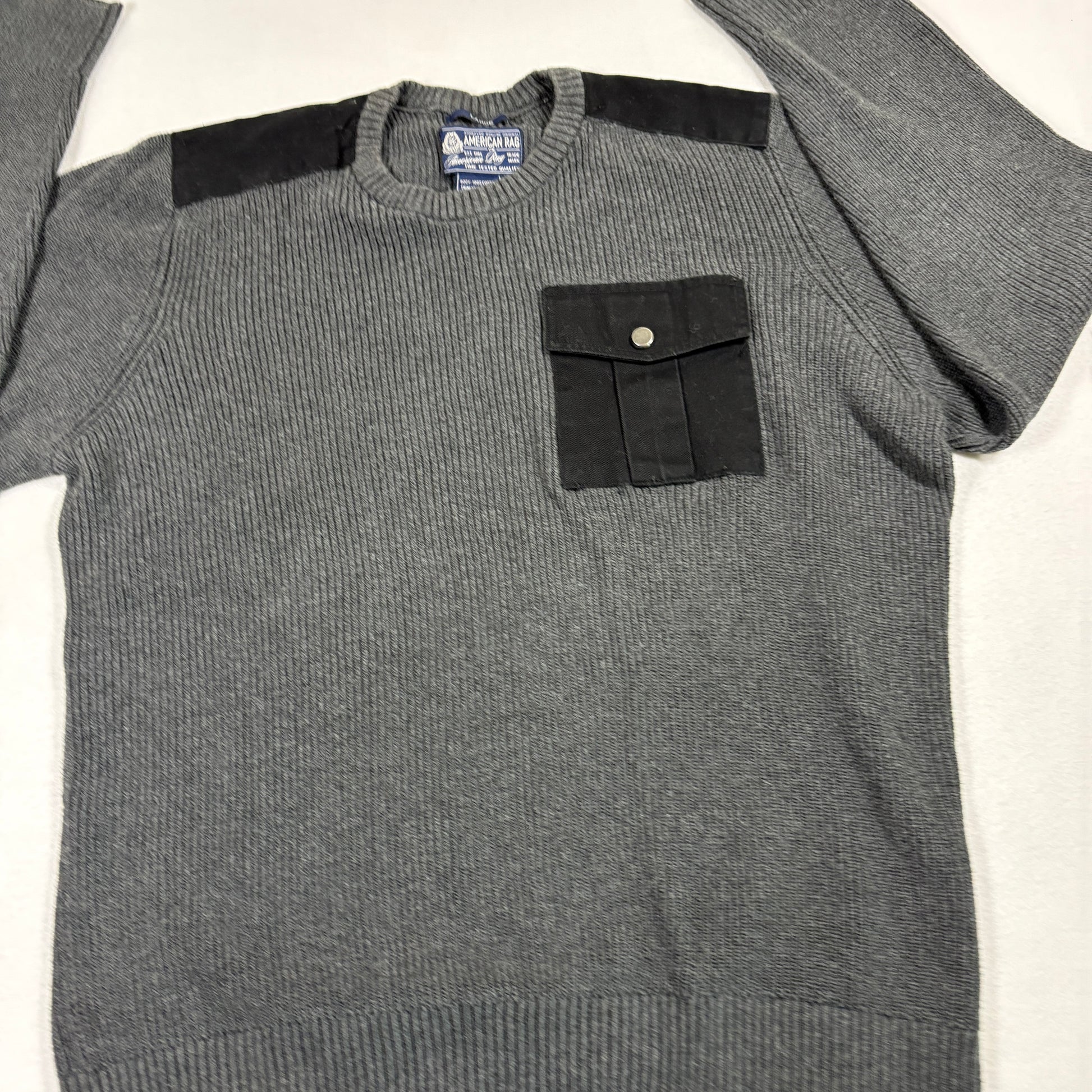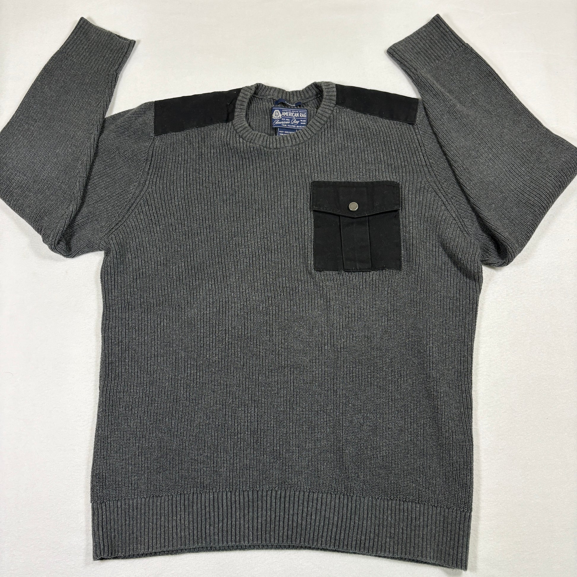 American Rag Mens Sweater Large Gray Knit Cotton Military Utility Pocket Y2K