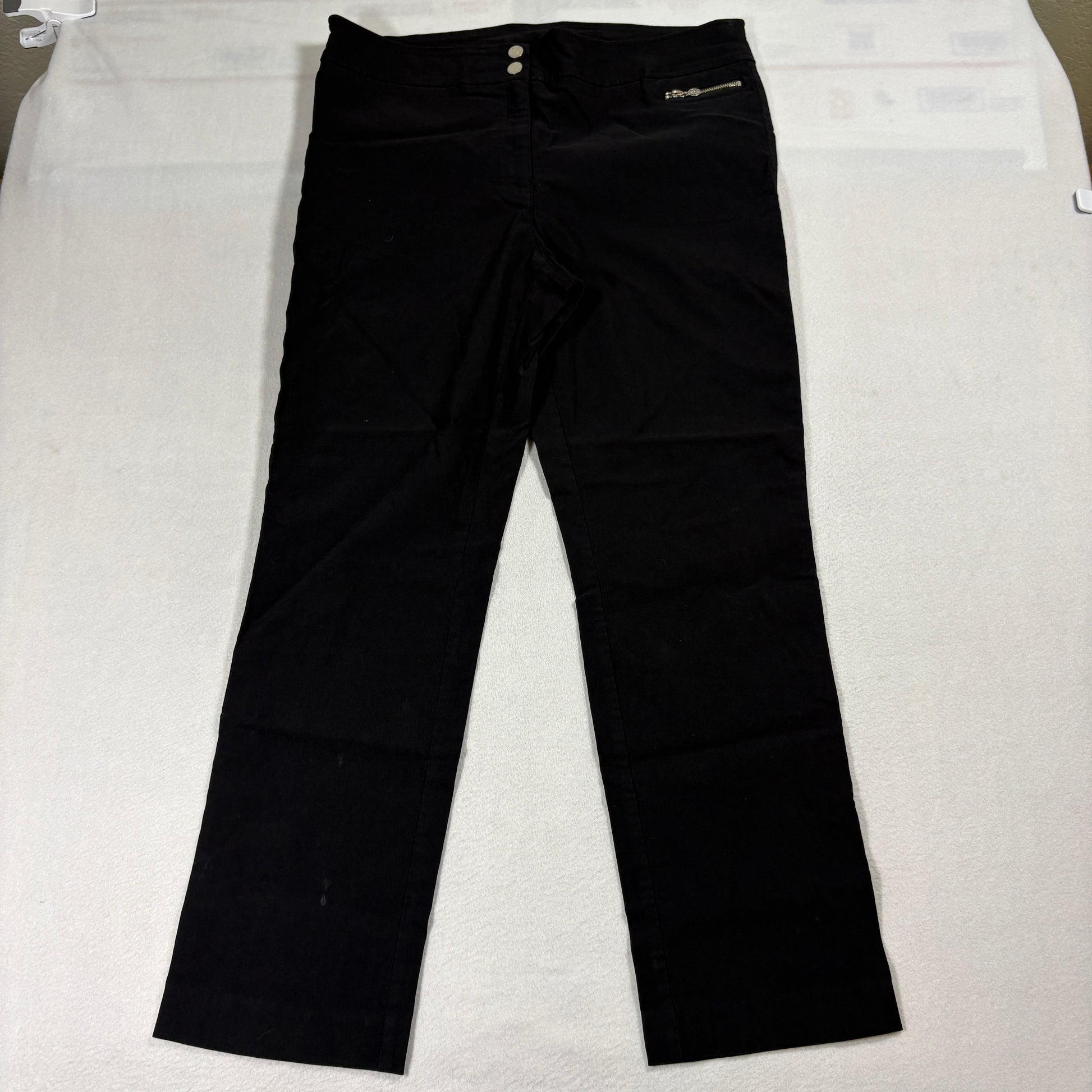 Anne Klein Pants Womens 14 Black Straight Dressy Stretch Zip Detail Workwear