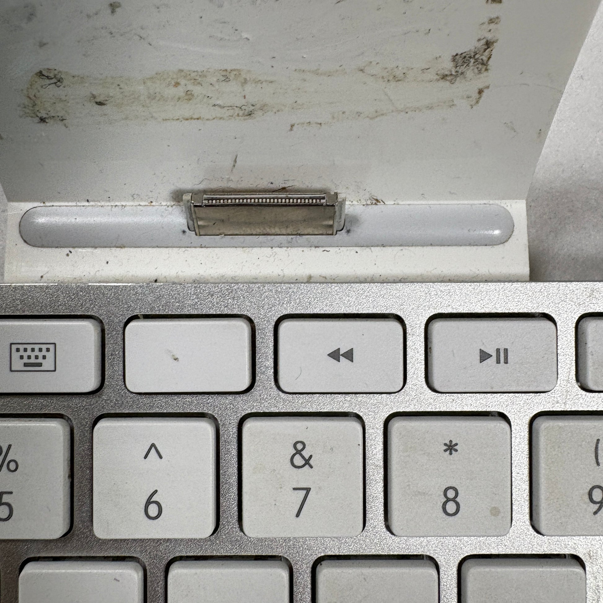 This Apple iPad Keyboard Dock combines a sleek aluminum Apple keyboard with a 30-pin docking station for the earliest iPad models. Perfect for collectors, retro Apple enthusiasts, or as a functional accessory for vintage iPads.
