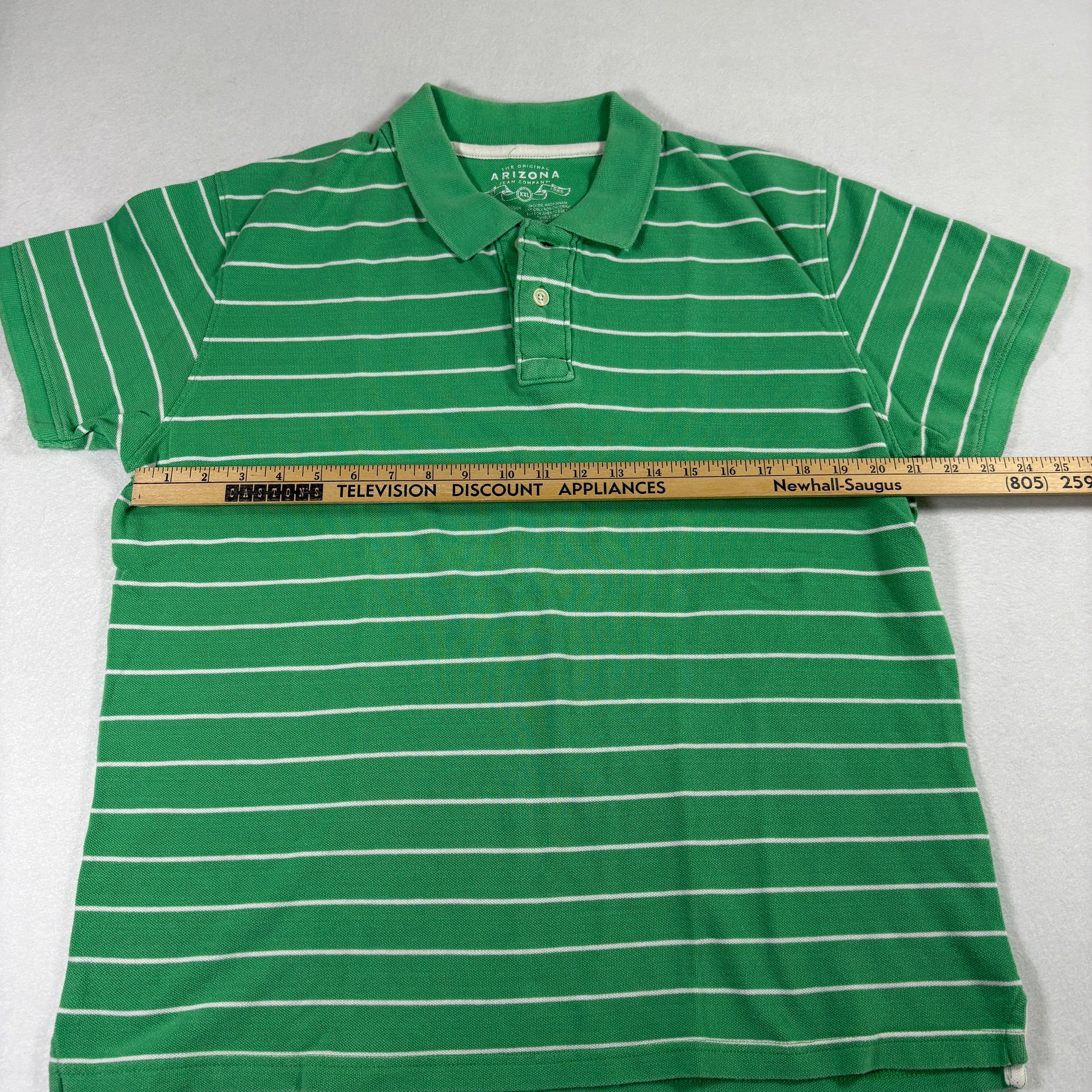 mens polo shirt, Arizona Jean Co XXL, green striped polo, casual golf top, summer tee