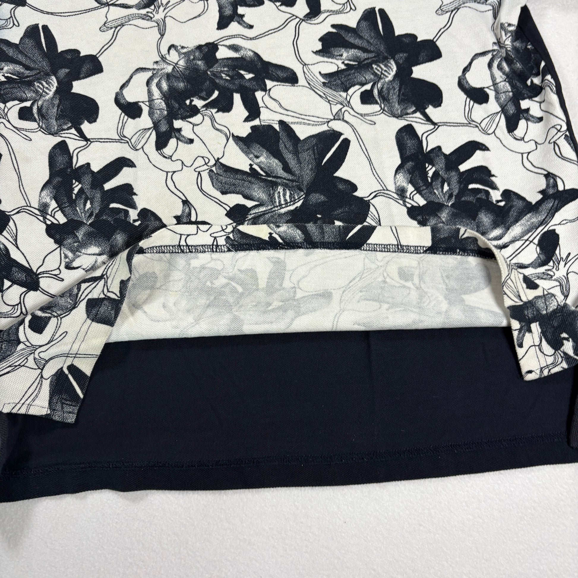 Armani Exchange Mens Polo Shirt Large Black White Floral Print Short Sleeve A|X