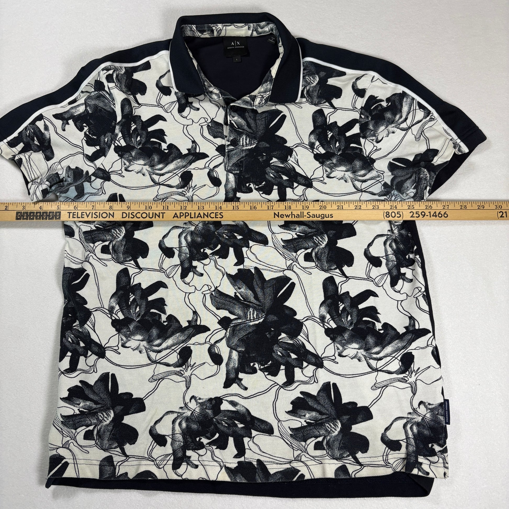 armani exchange, ax, polo shirt, floral, designer, short sleeve, casual, streetwear, luxury, mens large, black white