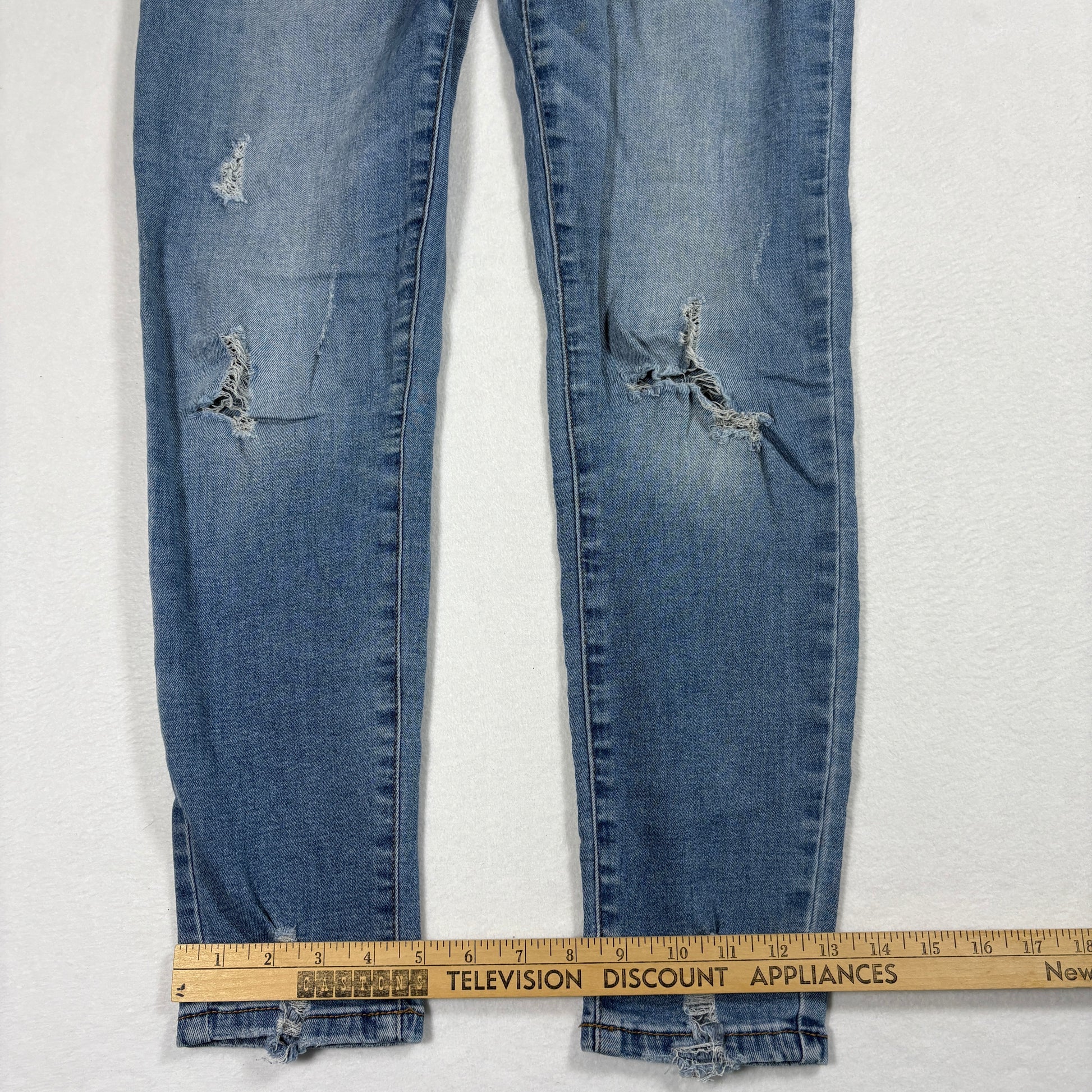 Ashley Mason Womens Jeans Sz 9 Distressed Skinny Denim Light Wash Y2K 90s