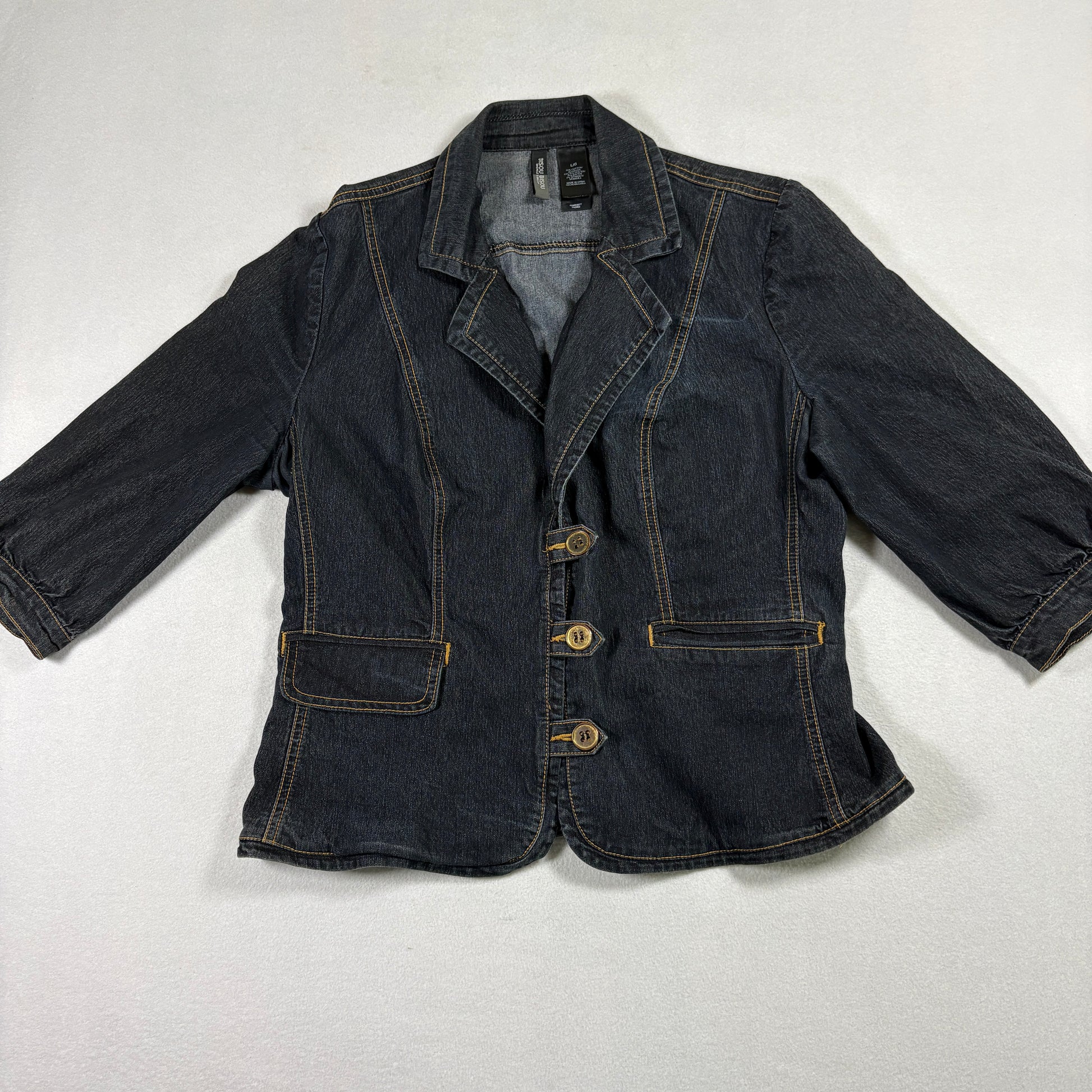 Bisou Bisou, Denim Blazer, Womens Jacket, Dark Wash Denim, Y2K Blazer, 90s Grunge, Stretch Denim Jacket, Womens Large