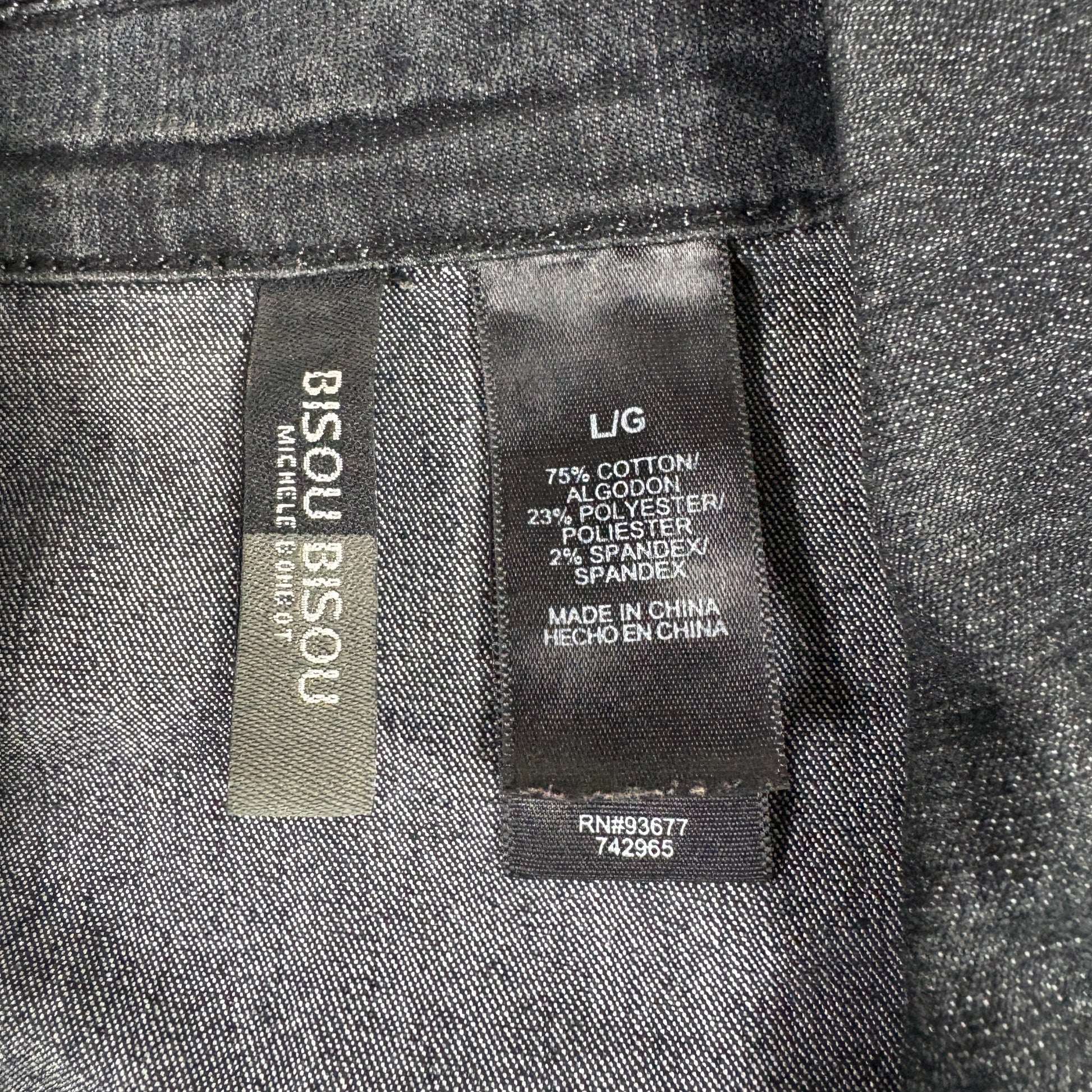Bisou Bisou Womens Denim Blazer Jacket Size Large Dark Wash Stretch Y2K 90s Grunge