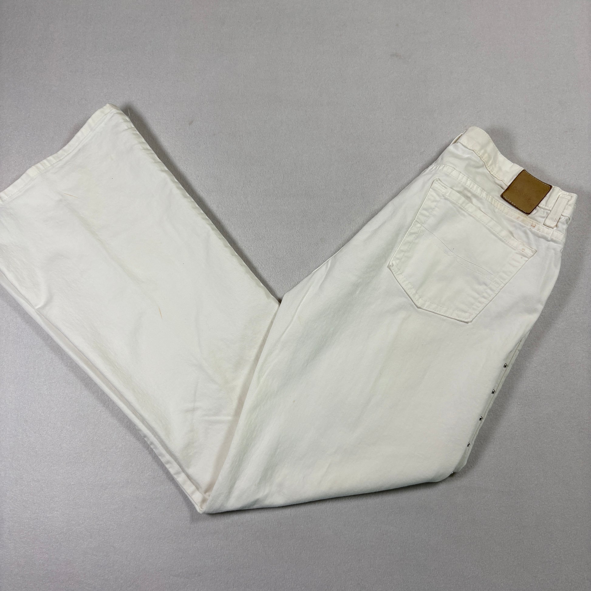 Buffalo jeans, Y2K, grunge, studded, bootcut, 90s, festival, vintage denim, white jeans, retro style, womens jeans