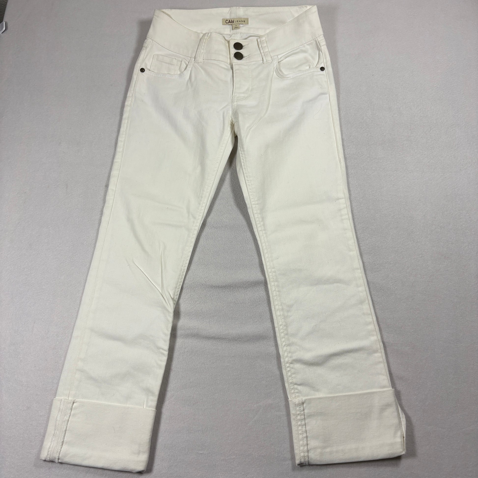 Cabi Jeans Womens Size 2 White Wide Waistband Bootcut Stretch Denim Mid Rise