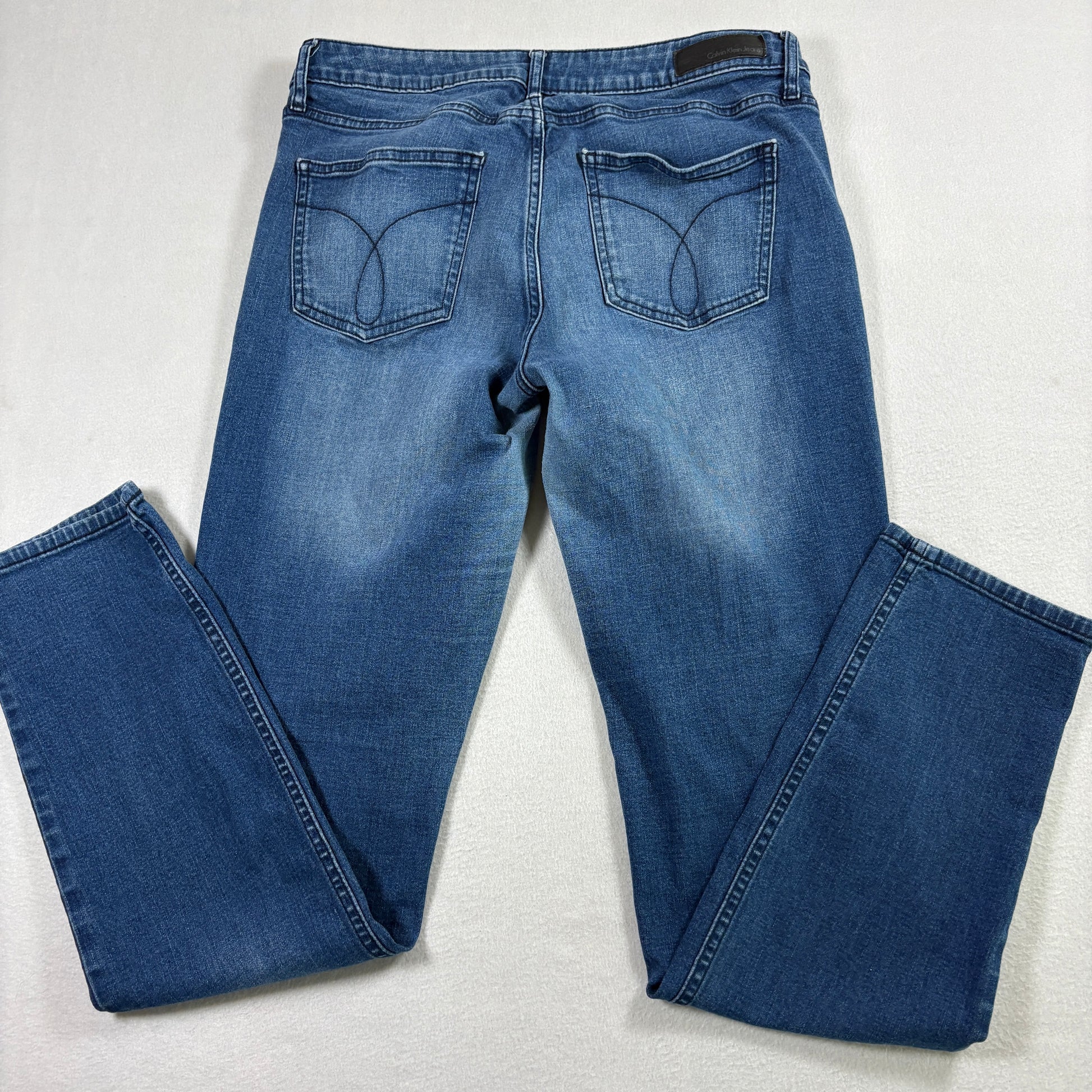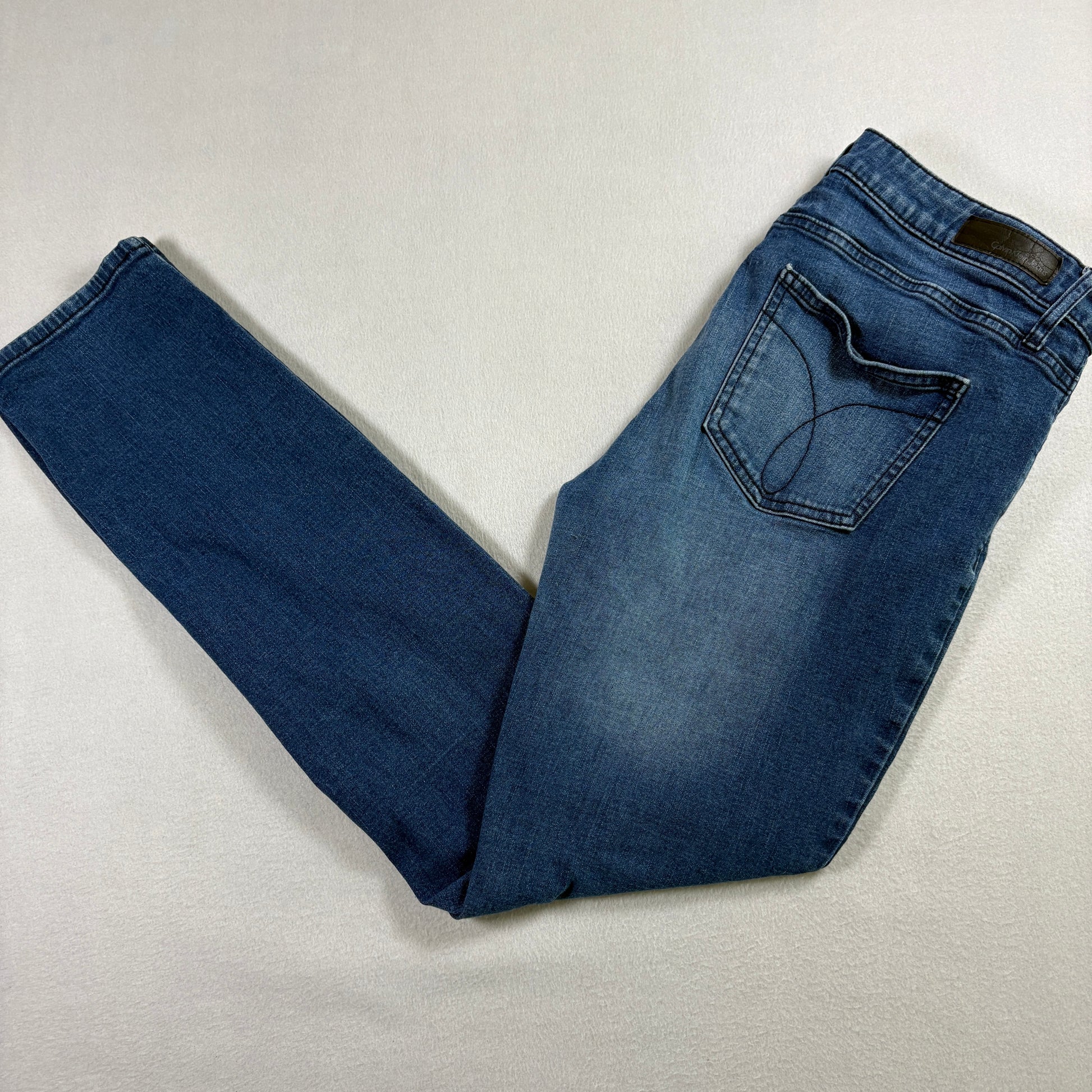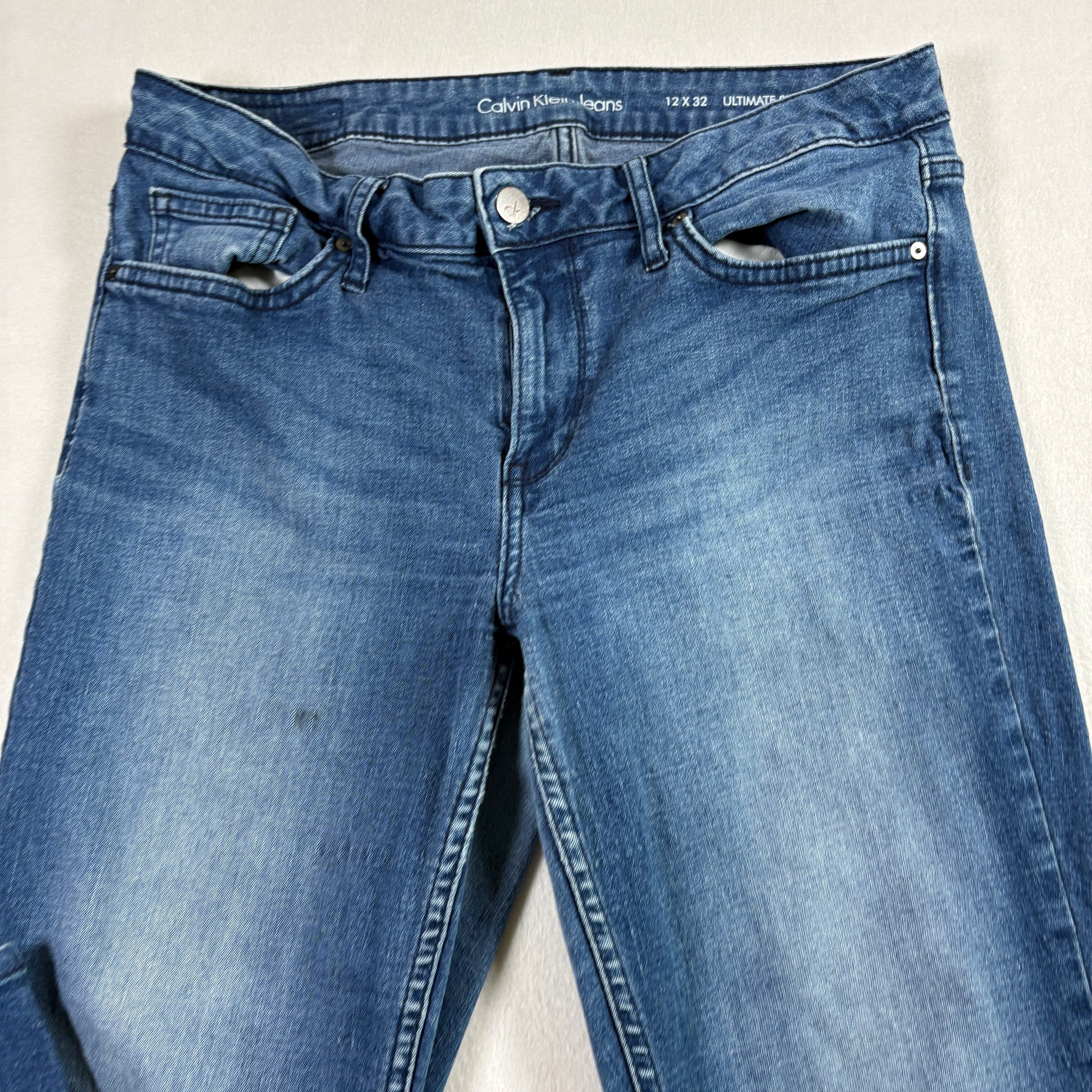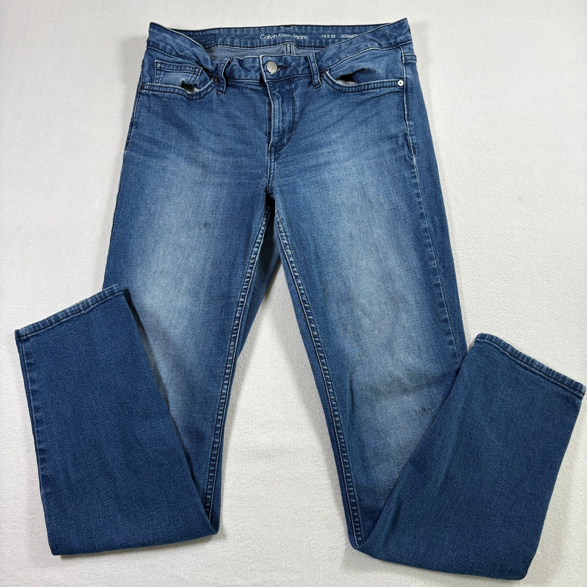 calvin klein jeans, womens size 12, ultimate skinny, stretch denim, blue wash jeans, ck denim, mid rise jeans, skinny fit, vintage y2k jeans, classic skinny jeans