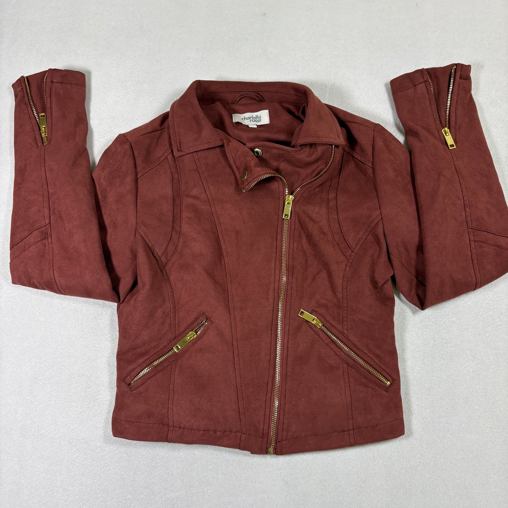 Charlotte Russe, Womens Jacket, Red Moto, Faux Suede, Y2K, Grunge, 90s, Cropped, Zip Up, Small