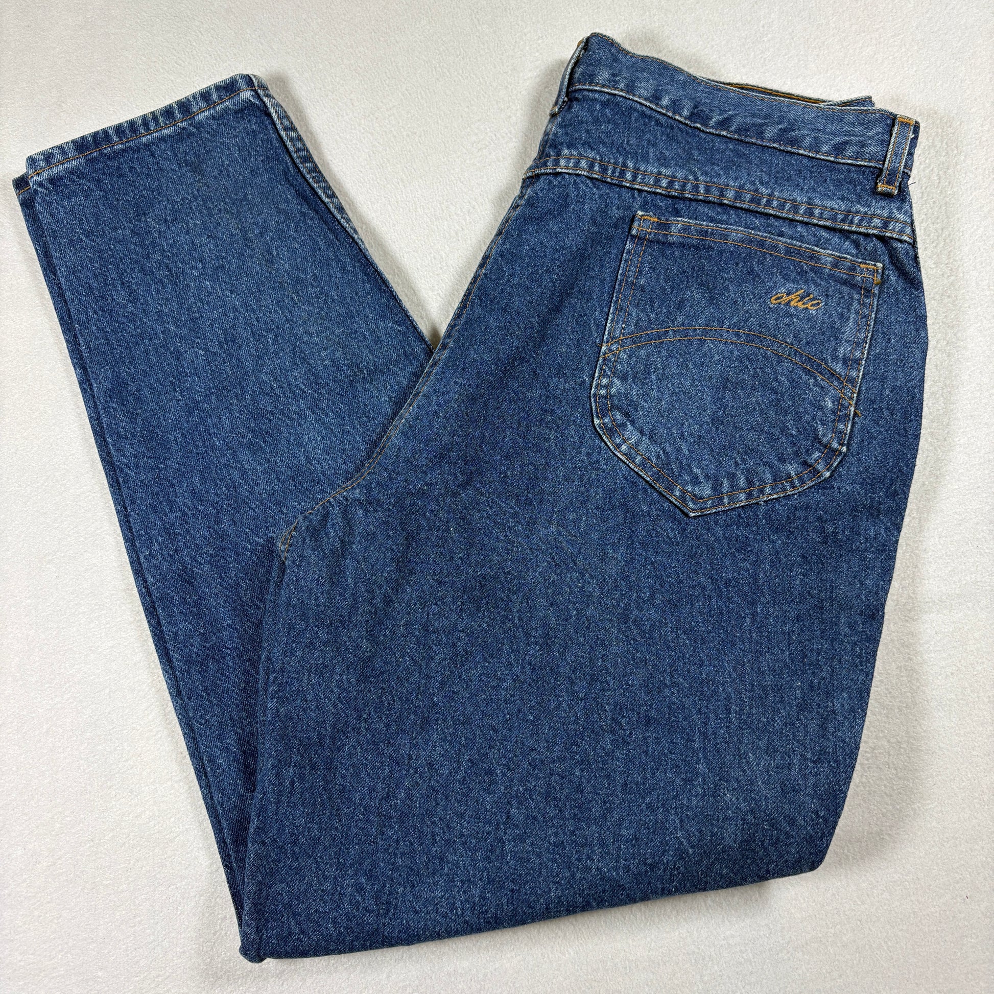 Authentic 90s Chic jeans made in the USA — a true vintage classic. These high-waisted mom jeans feature durable 100% cotton denim, a flattering tapered leg, and timeless mid-wash blue color. Perfect for Y2K, grunge, or retro streetwear looks.