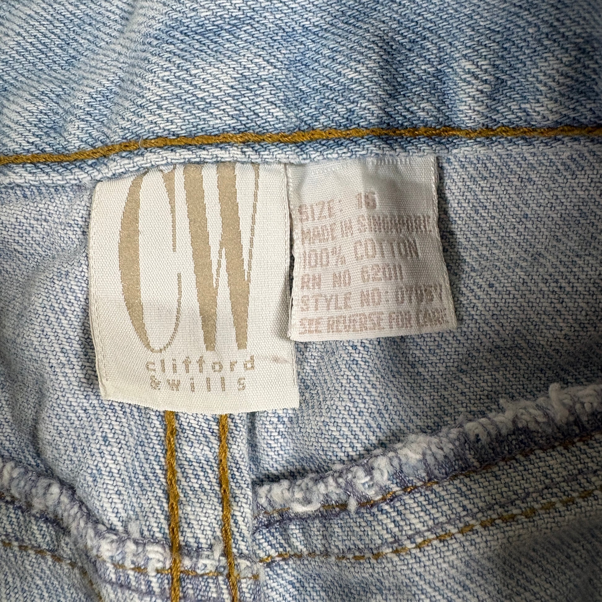 Authentic 90s vintage Clifford & Wills jeans in a light wash blue cotton denim. The relaxed, baggy fit and high-rise silhouette create an effortlessly cool grunge and Y2K vibe. Durable and soft 100% cotton — ideal for vintage streetwear styling.