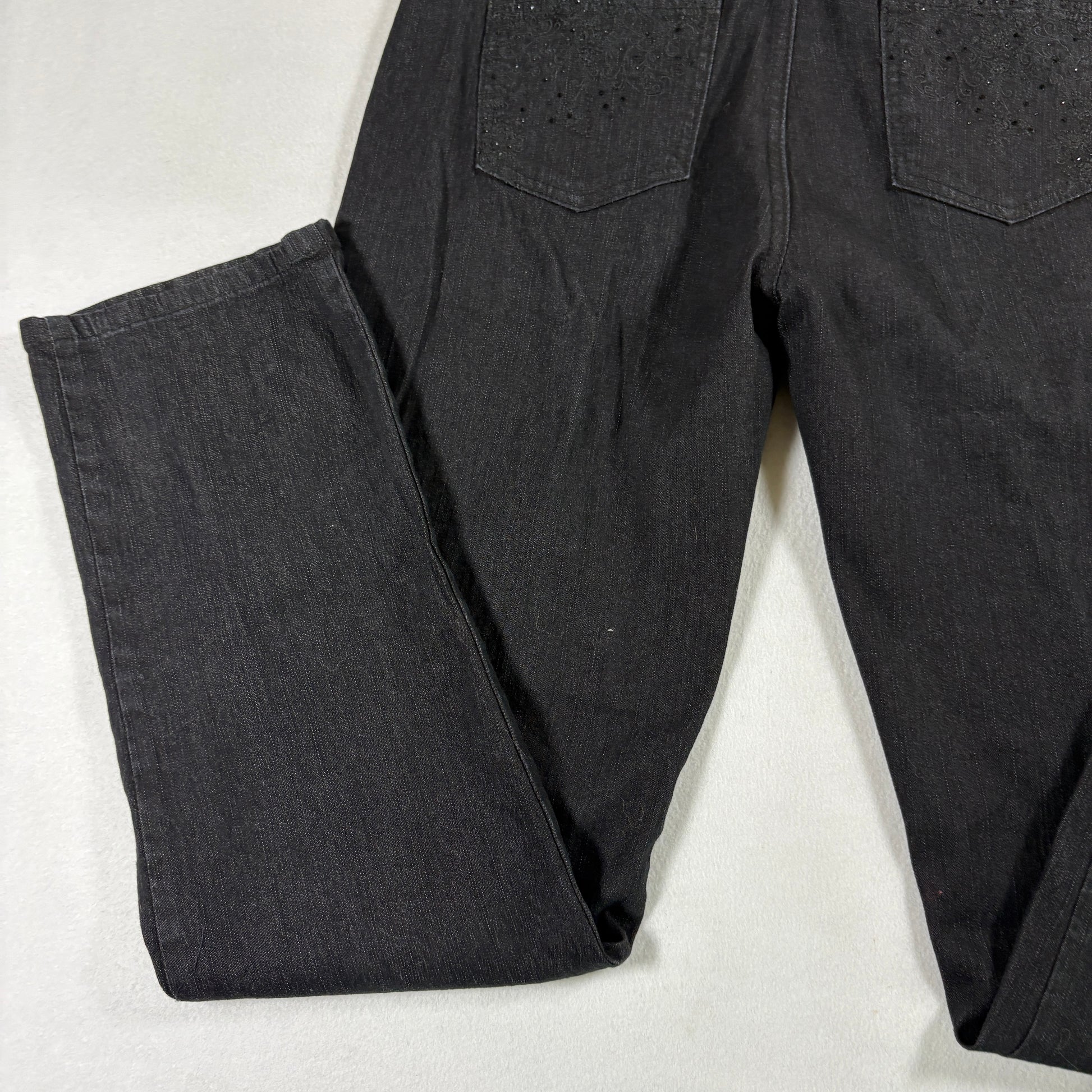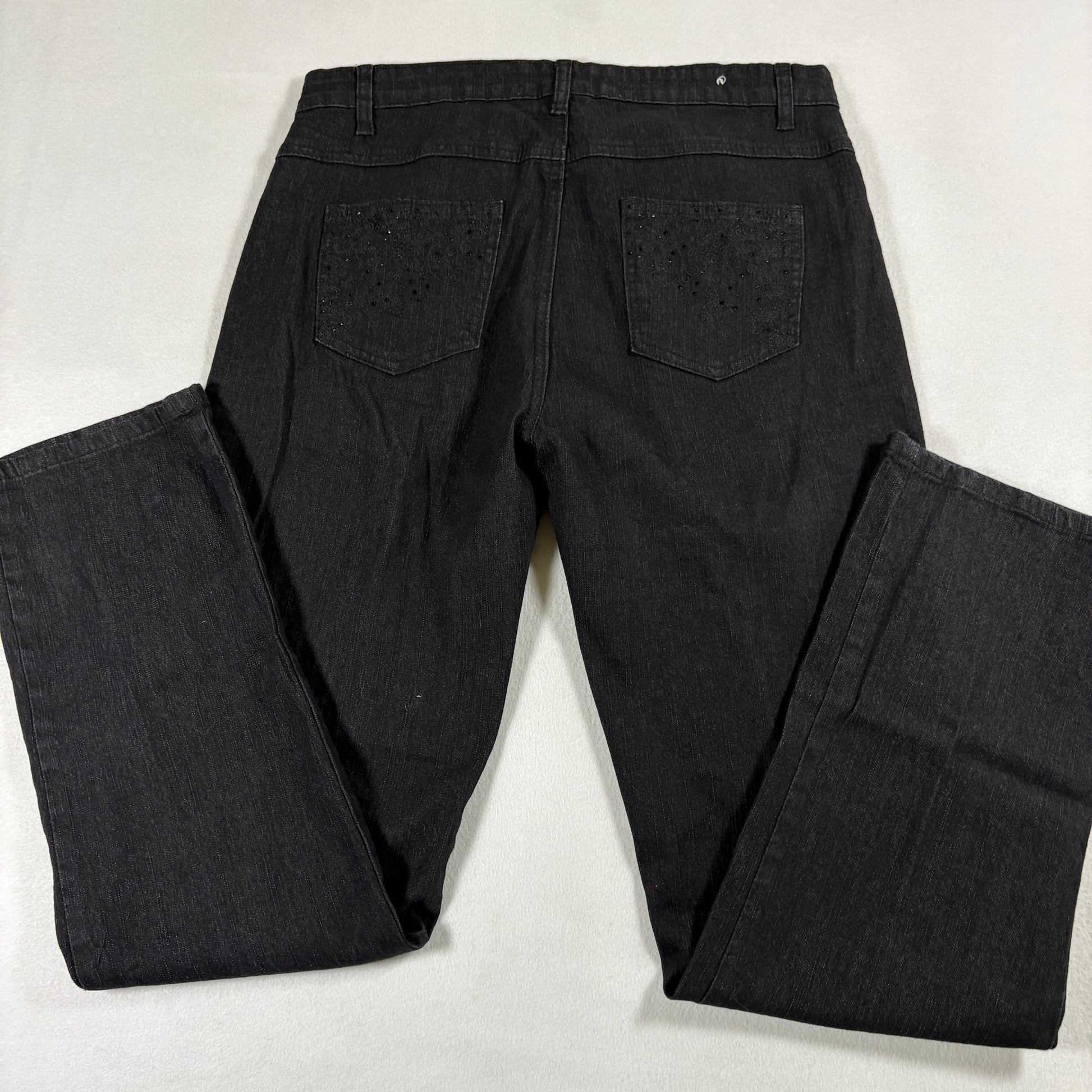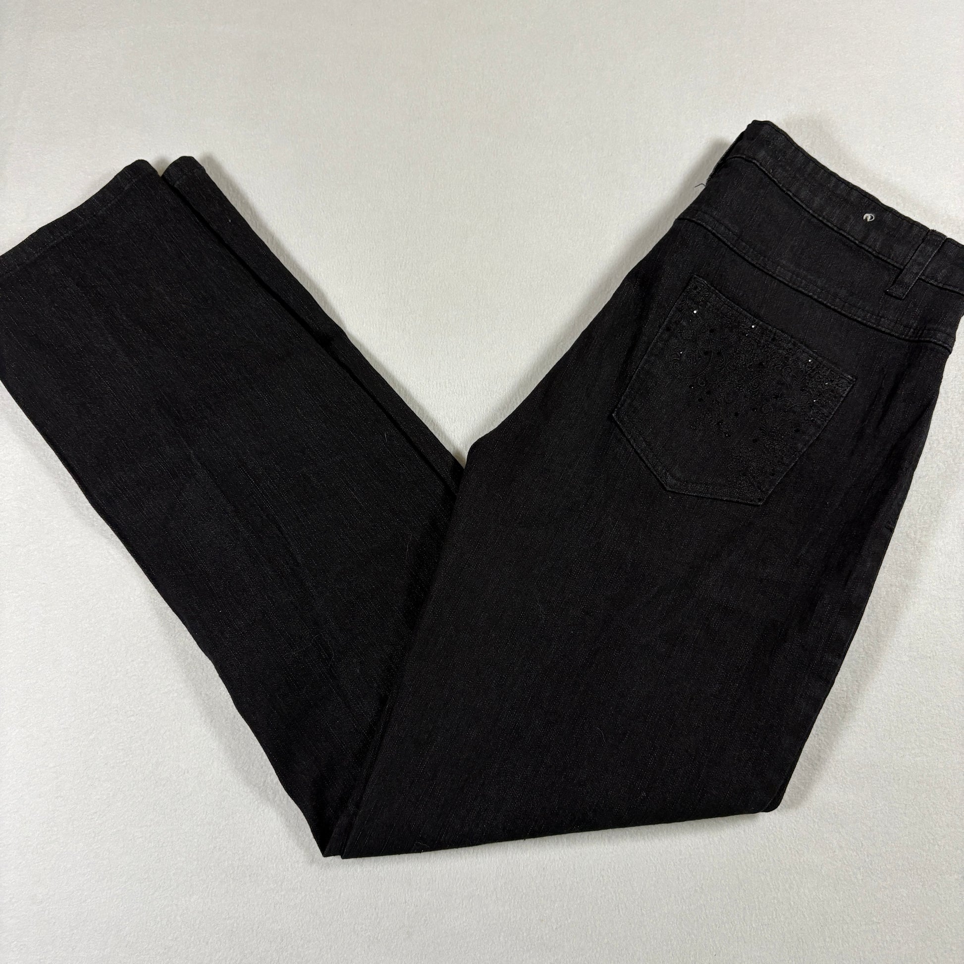 COS Jeans Womens 10 Black Denim Straight Leg Stretch Mid Rise Rhinestone Pocket