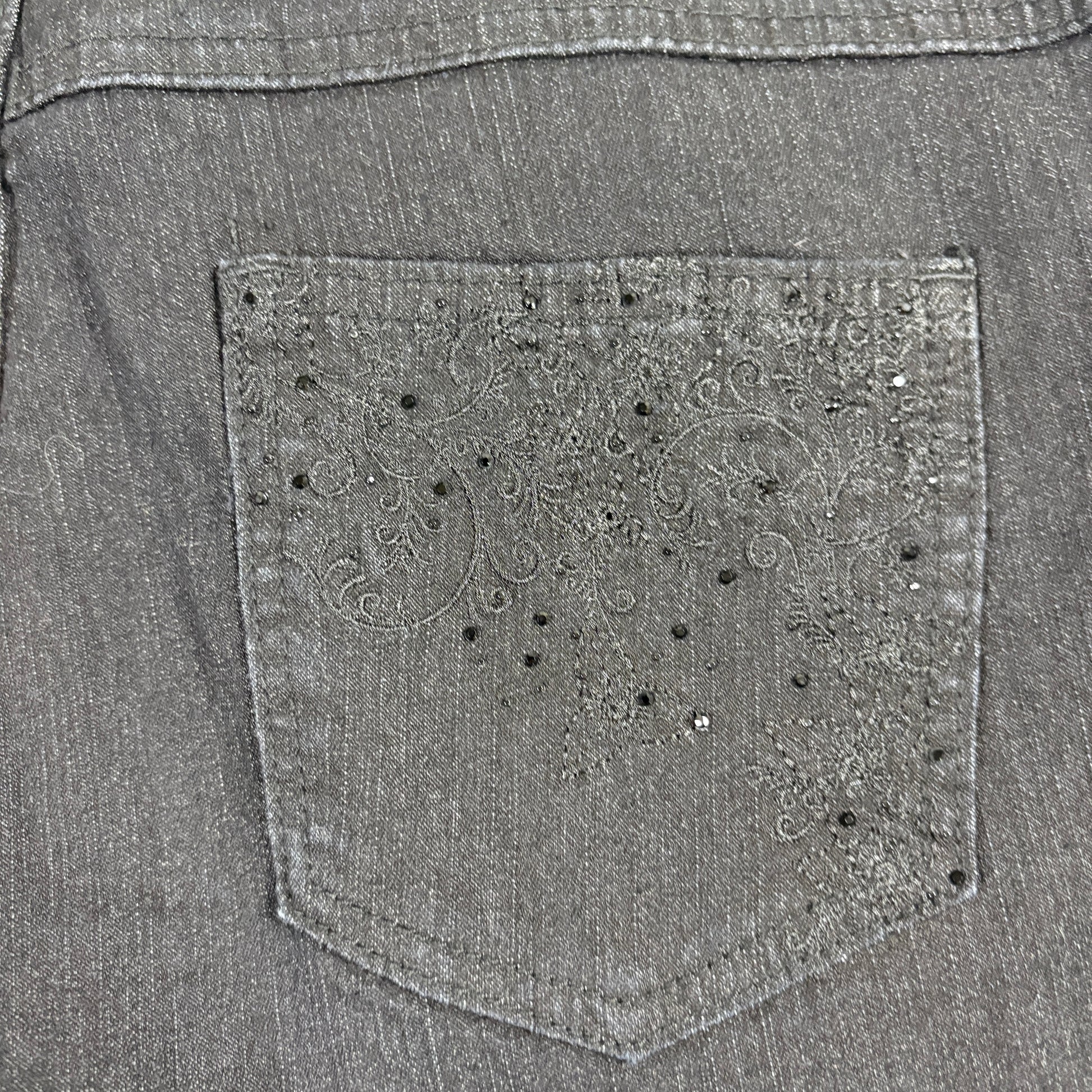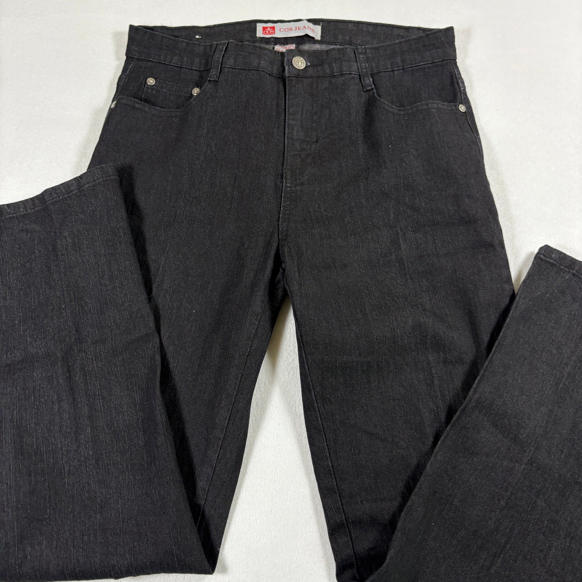 cos jeans, womens jeans, black stretch denim, straight leg, rhinestone pocket, mid rise, y2k style, size 10