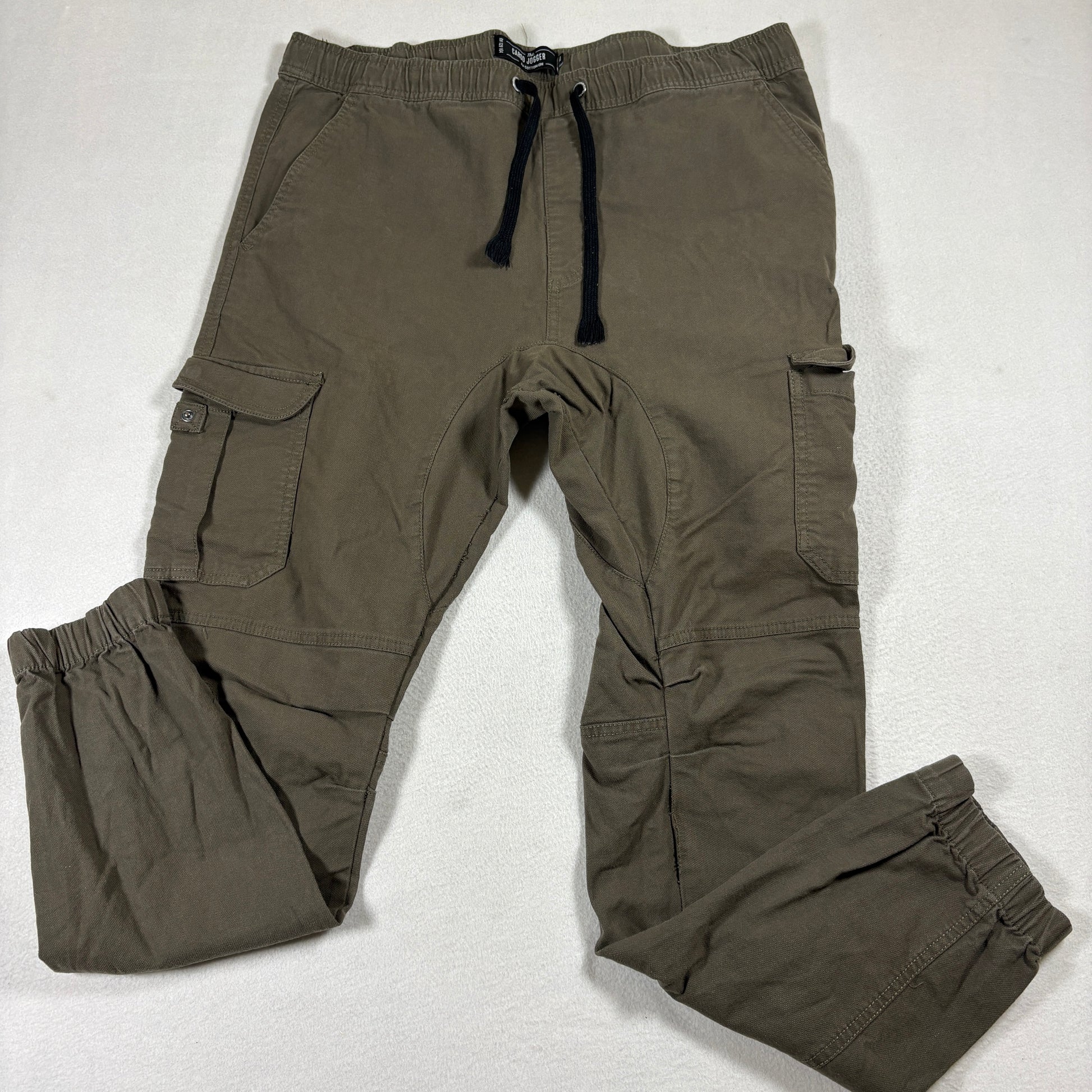 Cotton On Cargo Jogger Pants Mens 34 Olive Green Elastic Cuff Project Repair