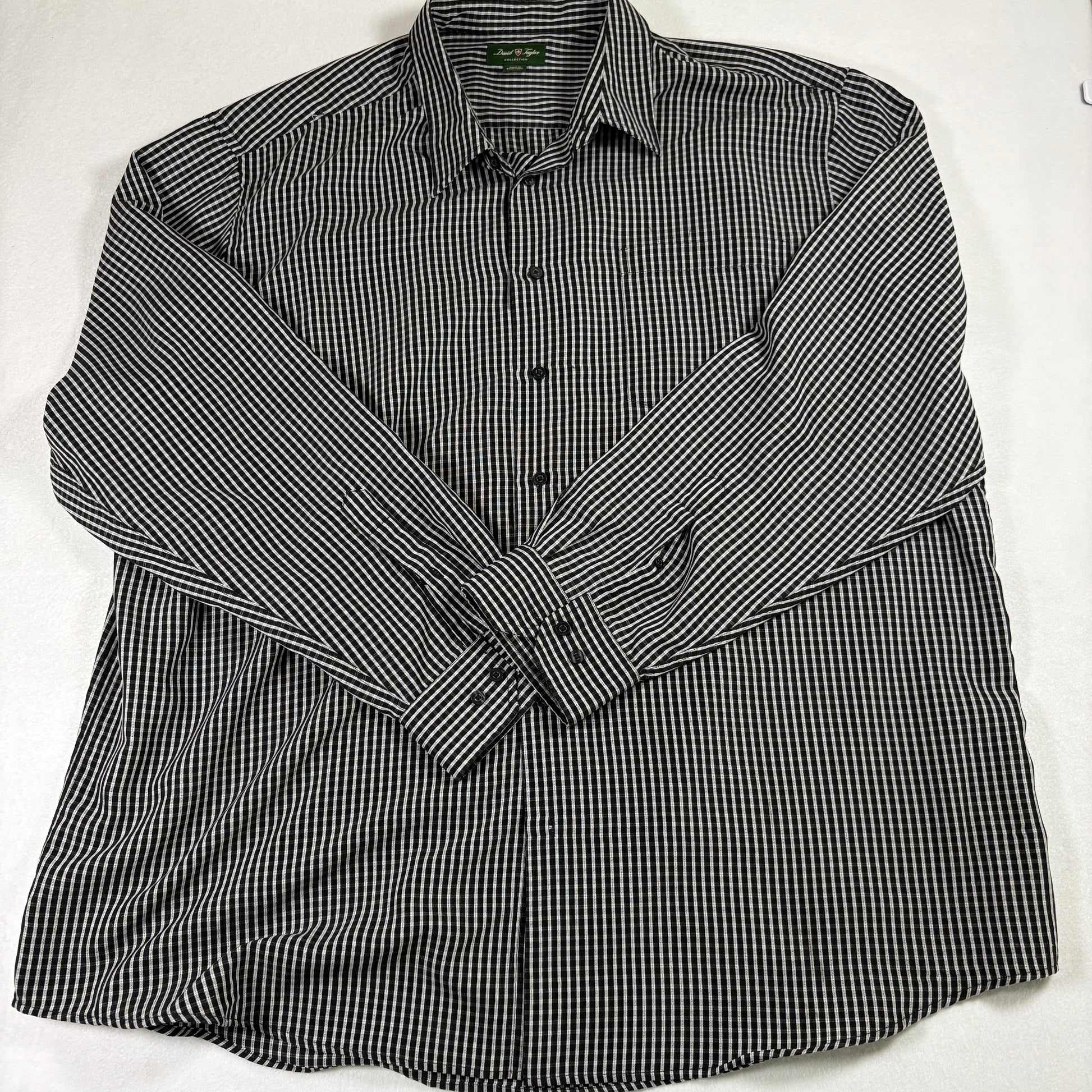 David Taylor Mens Shirt 3XLT Black White Plaid Button Front Long Sleeve Big Tall