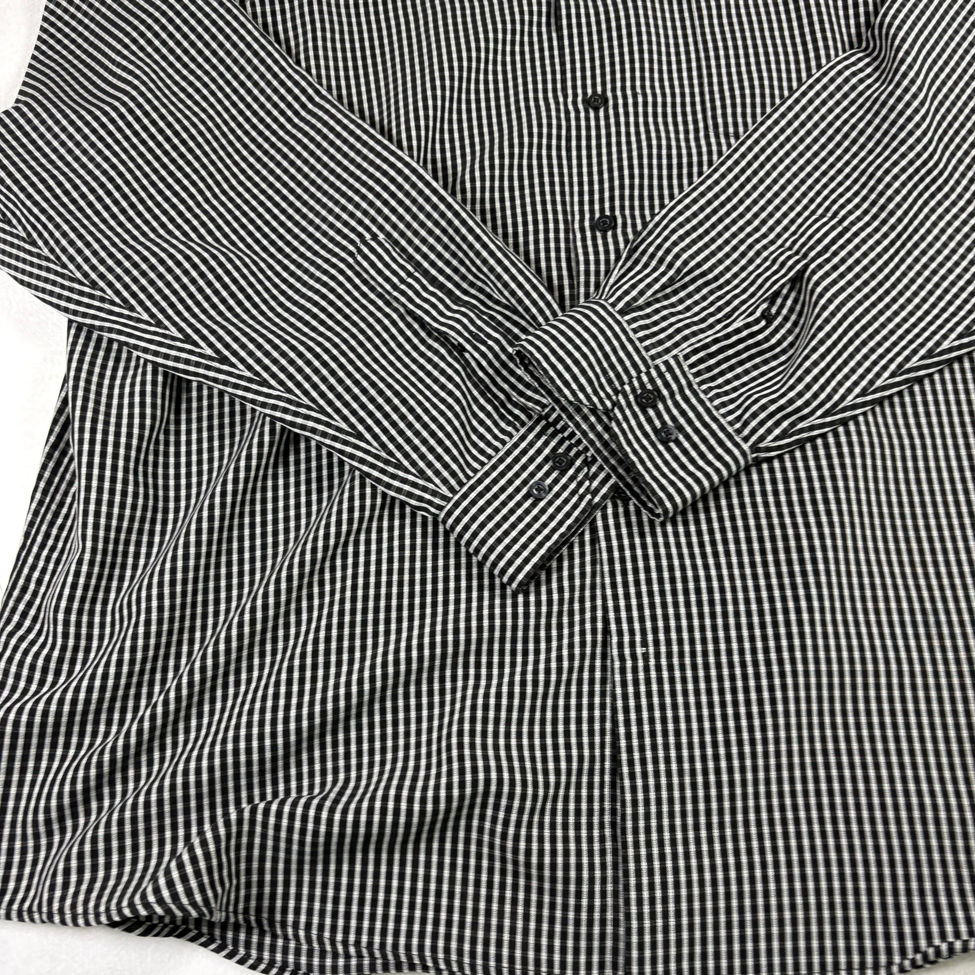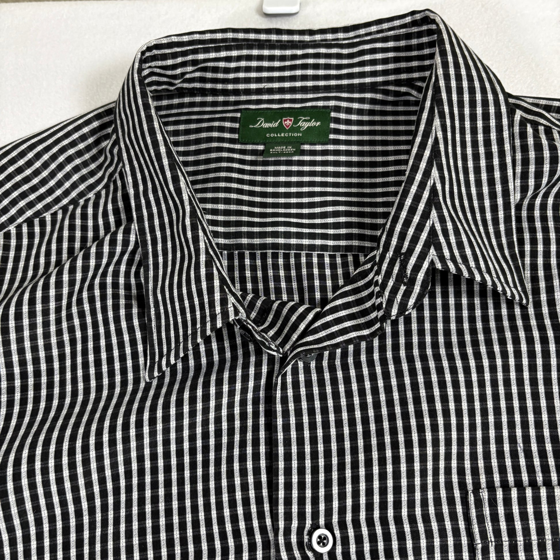 mens big tall shirt, 3XLT button front, David Taylor plaid, black white long sleeve