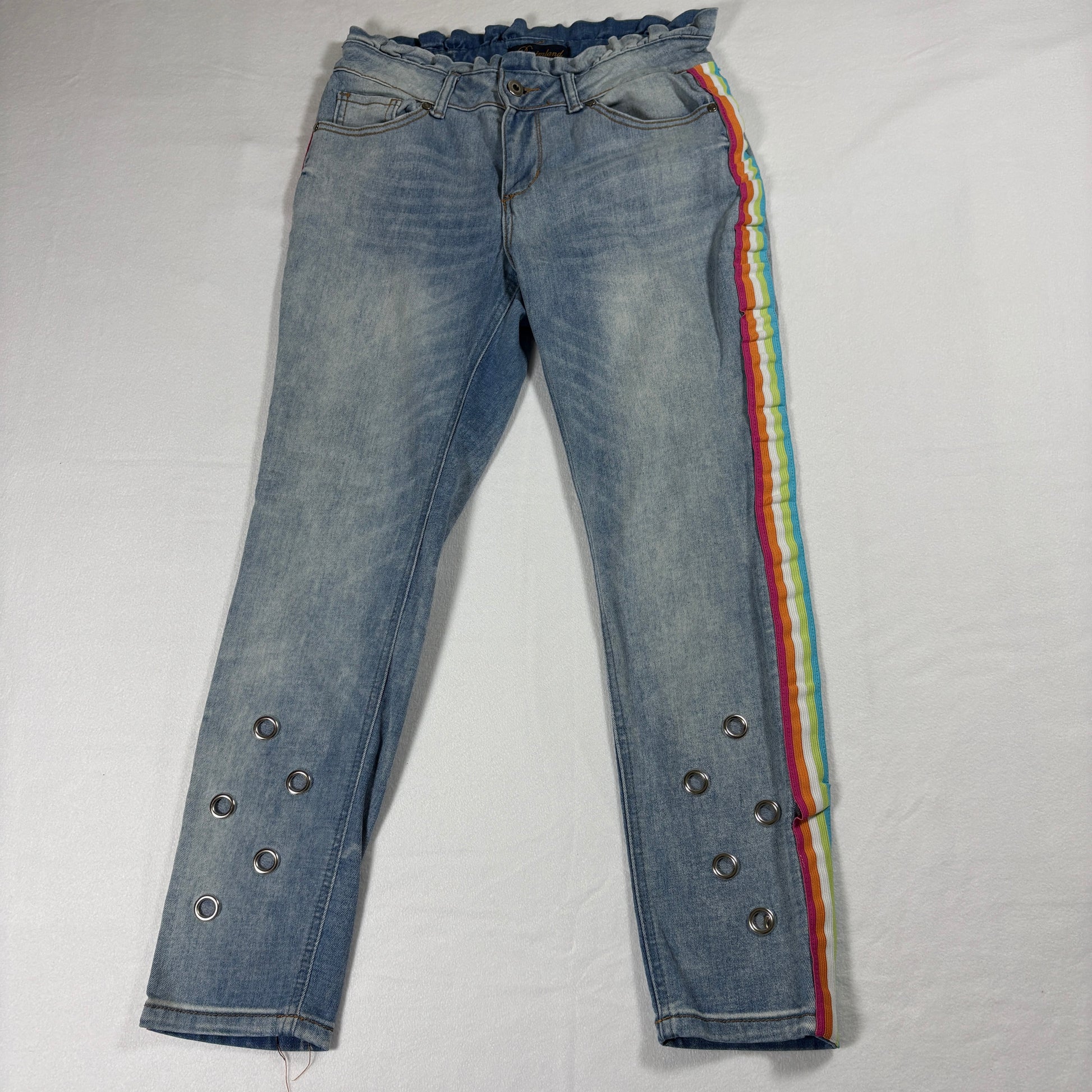Denimland Jeans Womens 7 Y2K Rainbow Stripe Grommet Leg Light Wash Retro Denim