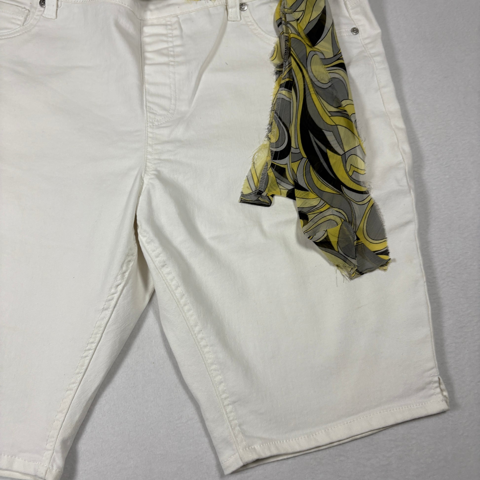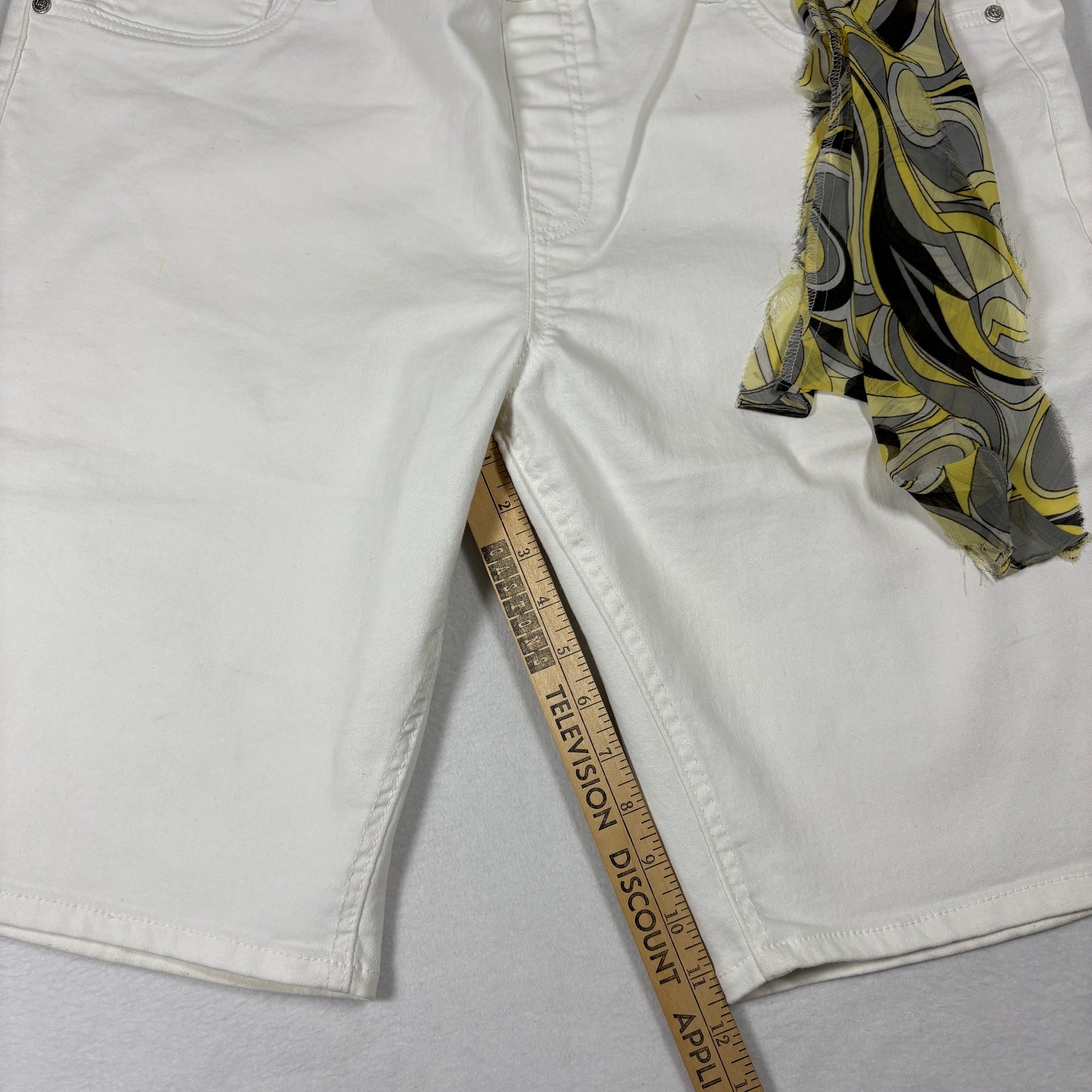 DG2 Womens Shorts 2X White Stretch Denim Bermuda Y2K 90s Vintage Scarf Belt