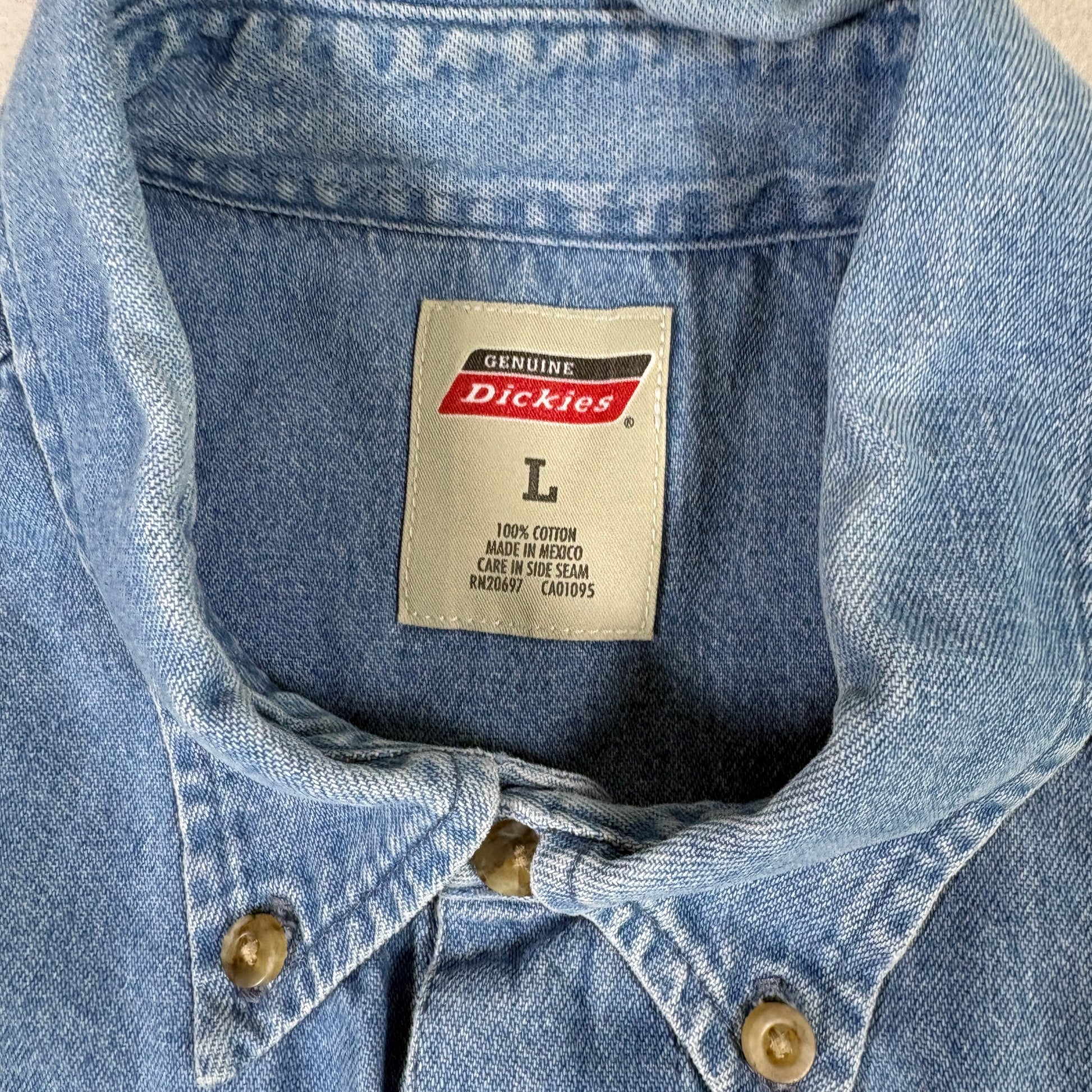 Dickies Mens Denim Button Up Shirt L Blue 100% Cotton Workwear Y2K Grunge