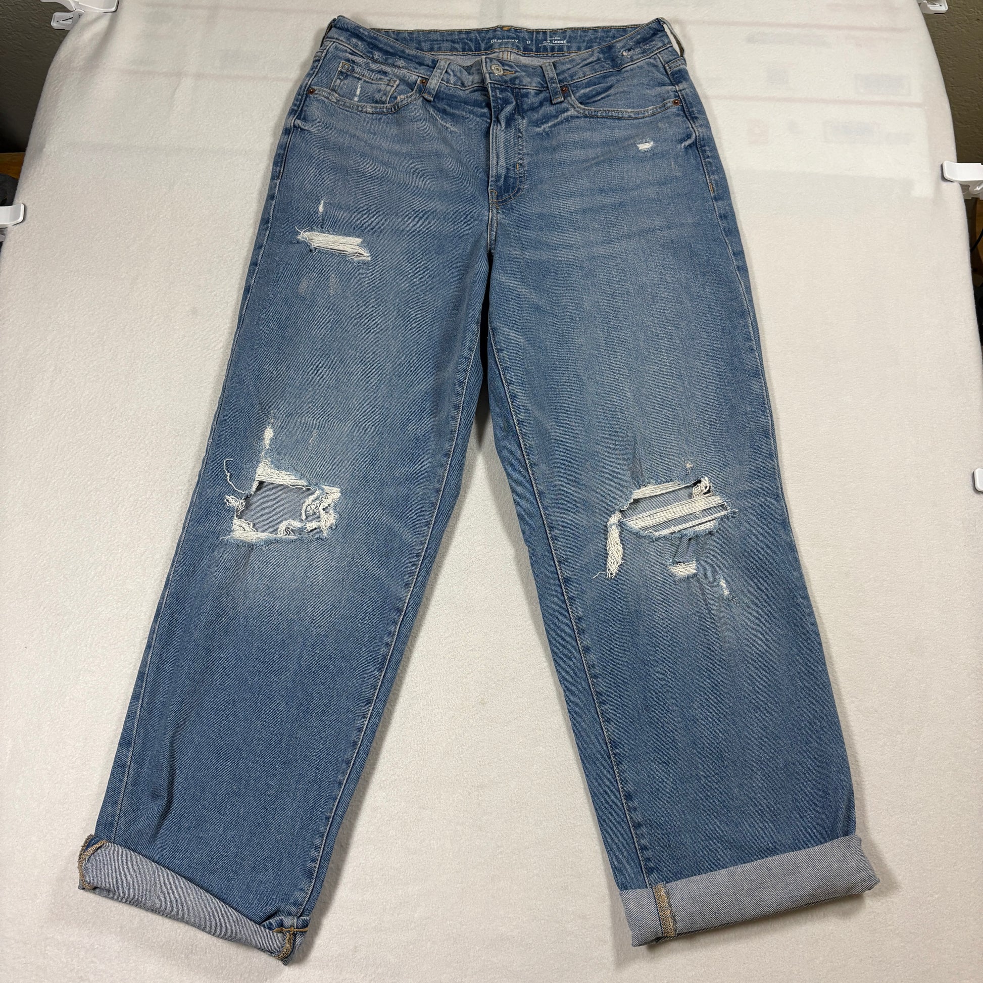 Distressed High Rise Loose Jeans Womens 12 Vintage Baggy Light Wash Blue Y2K
