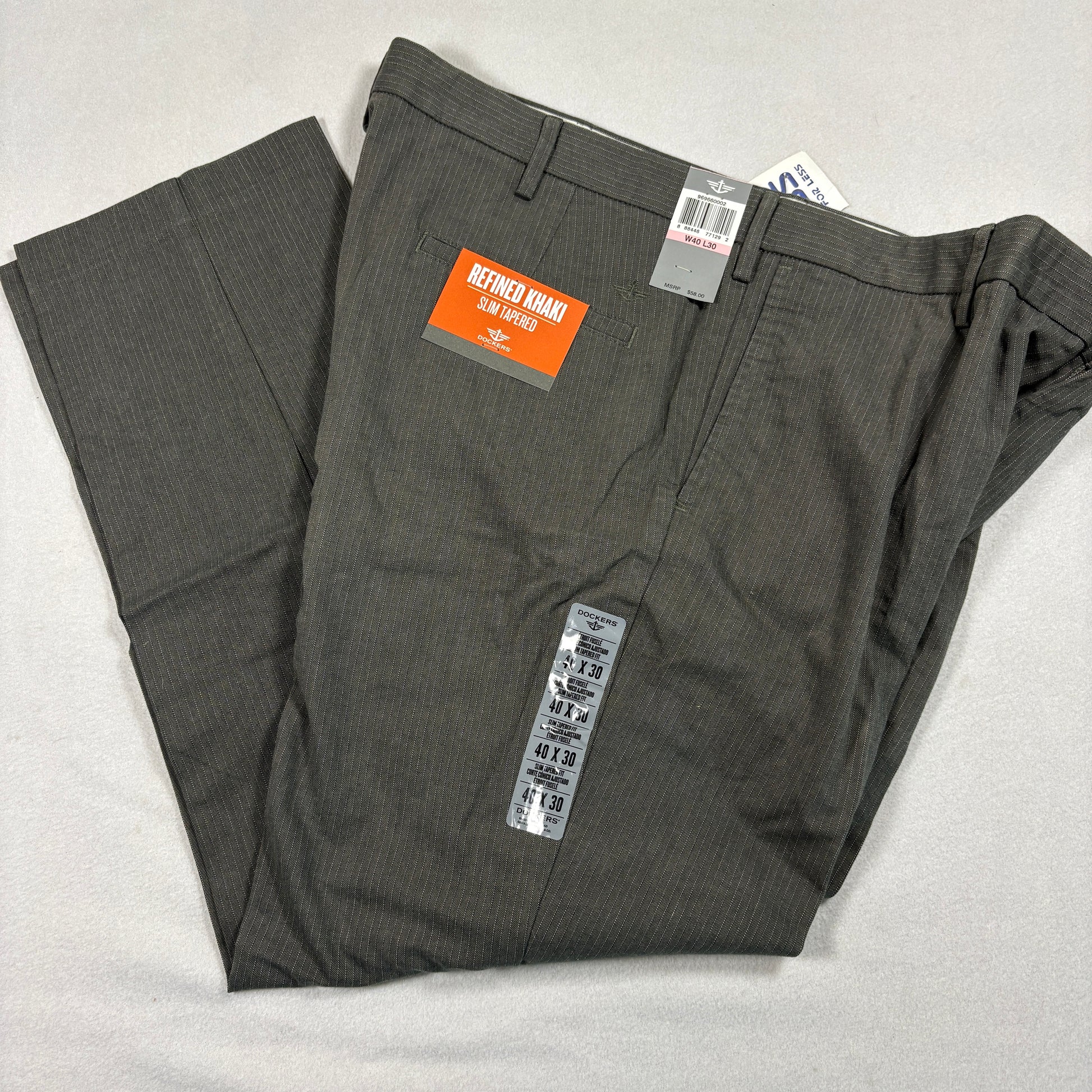 Dockers, Mens Pants, Gray, Pinstripe, Slim Fit, Tapered, Stretch, Dress, Work, 40x30, NWT