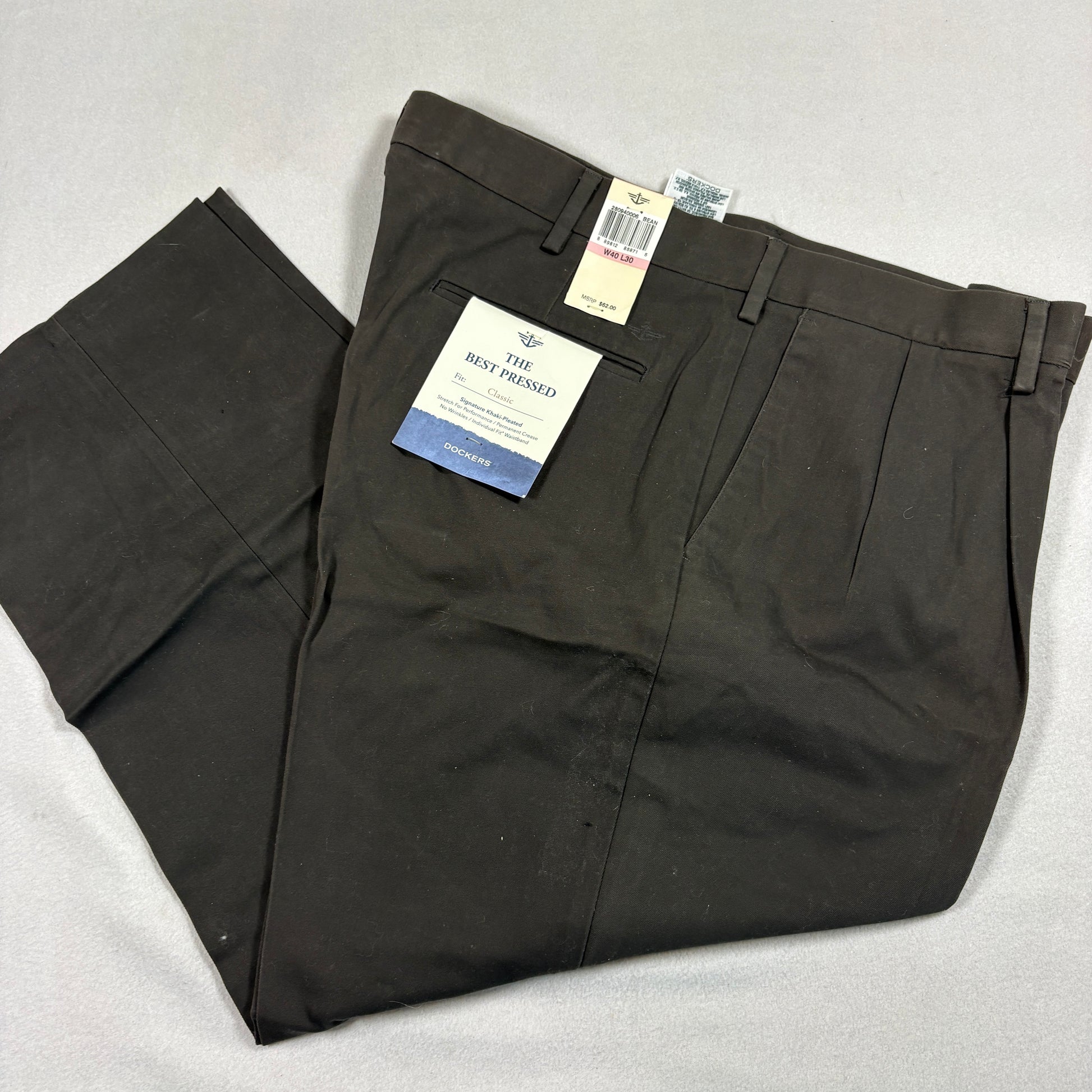 Dockers Mens Brown Classic Fit Khaki Pants 40x30 NWT Stretch Pleated Workwear