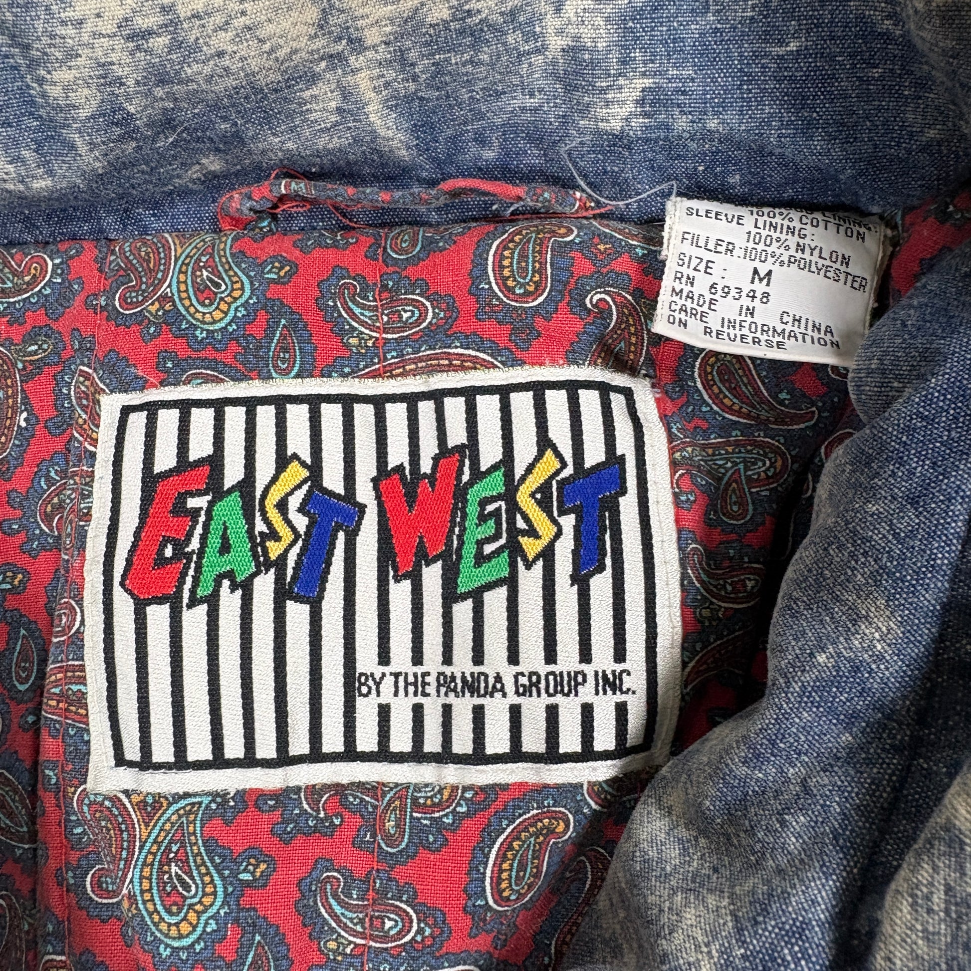 East West Acid Wash Denim Jacket Mens M Vintage 90s Grunge Hooded Paisley Lined