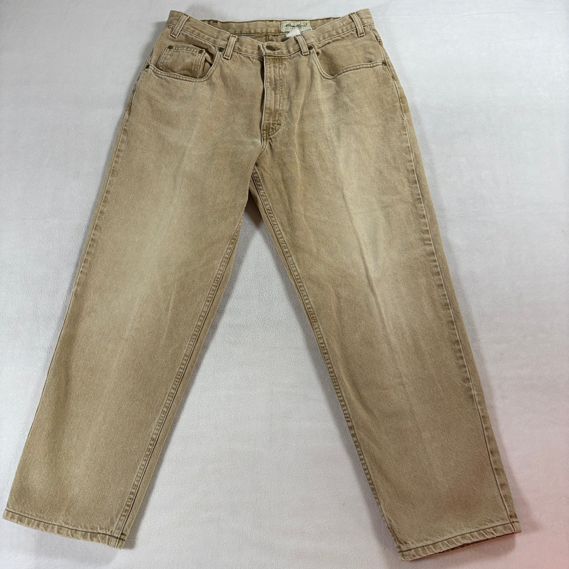 eddie bauer jeans vintage usa made tan beige denim relaxed straight leg workwear outdoor hiking carpenter casual 90s mens 36x30 cotton pants