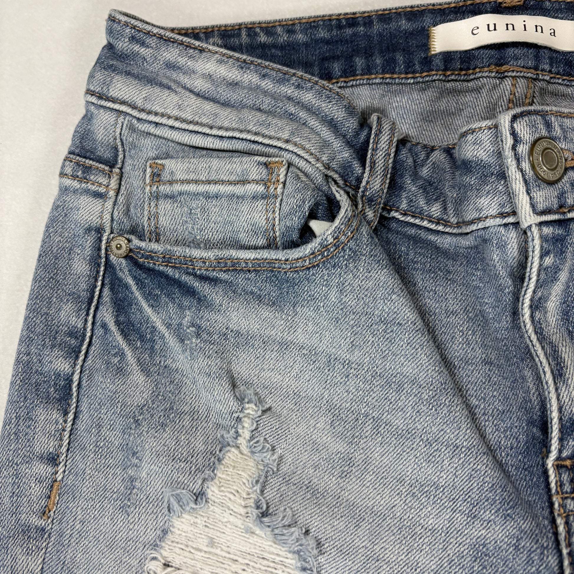 eunina jeans, womens distressed jeans, ripped denim, boyfriend crop, low rise jeans, y2k grunge, 2000s denim, womens size 3 jeans