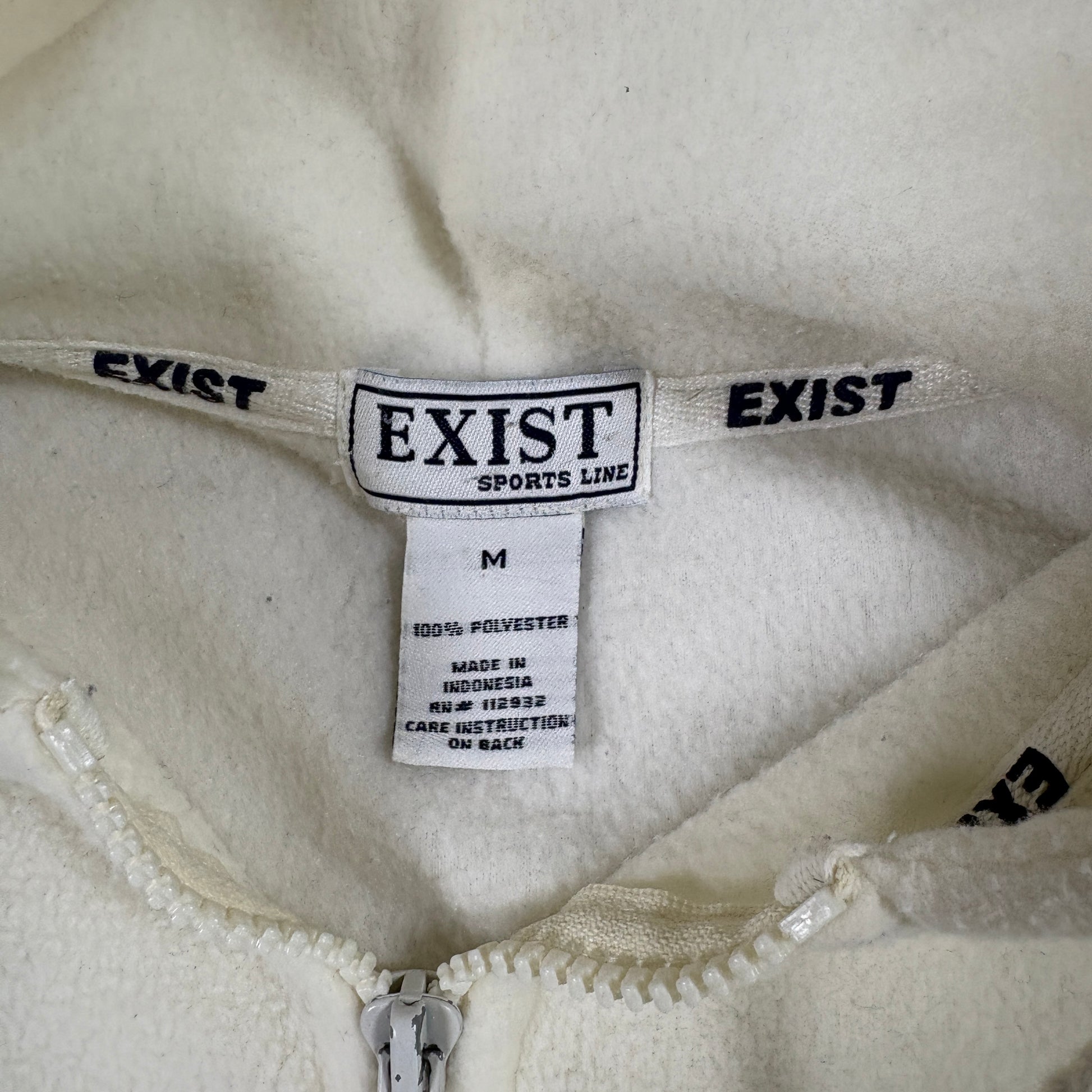 Exist Mens M White Myrtle Beach Fleece Hoodie 90s Y2K Pullover Zip Front