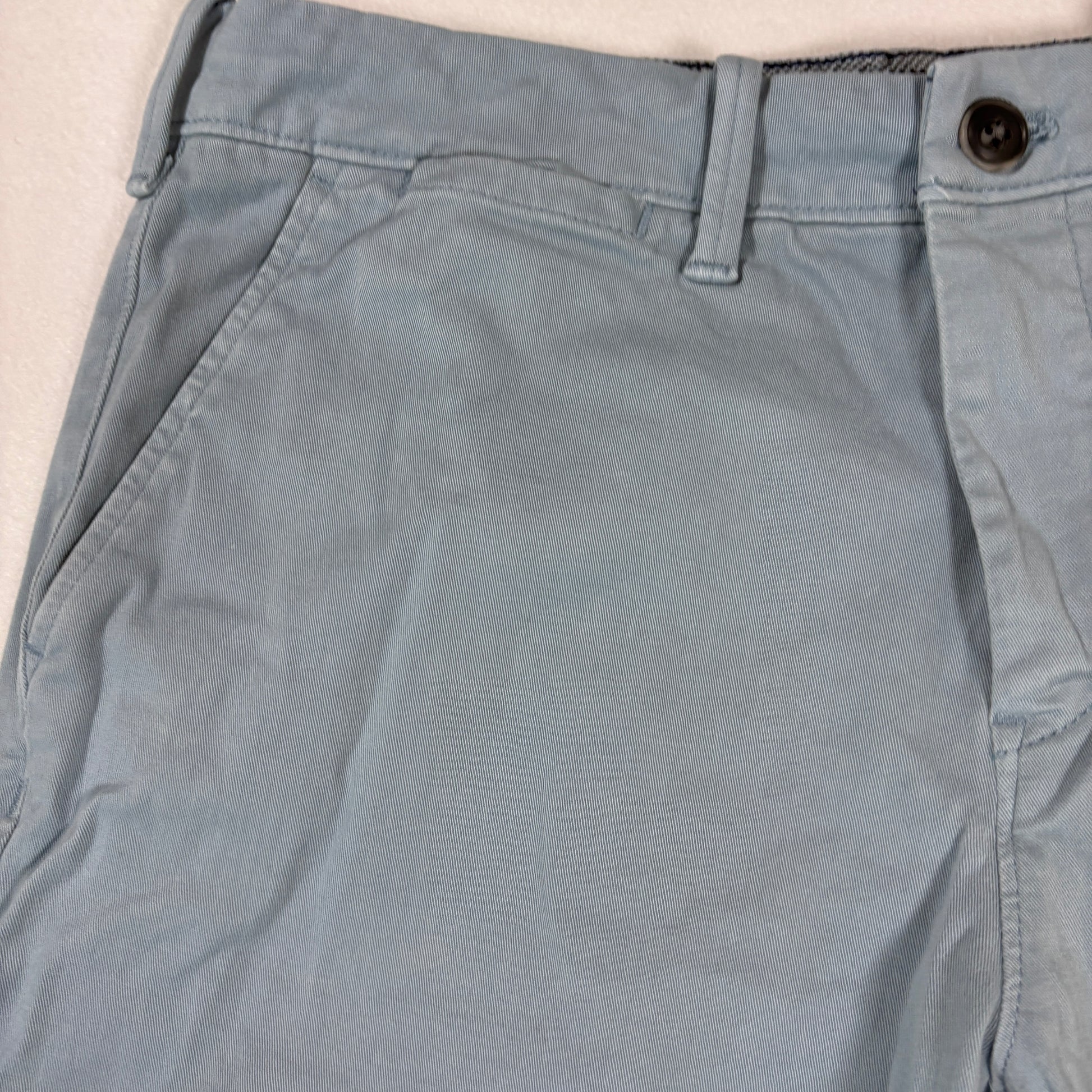 Express slim fit chino shorts in a light blue shade, perfect for casual wear, summer outings, or pairing with polos and tees. Stylish and versatile, these shorts are an easy wardrobe staple. Minor faint marks/spots on front (please see pictures).