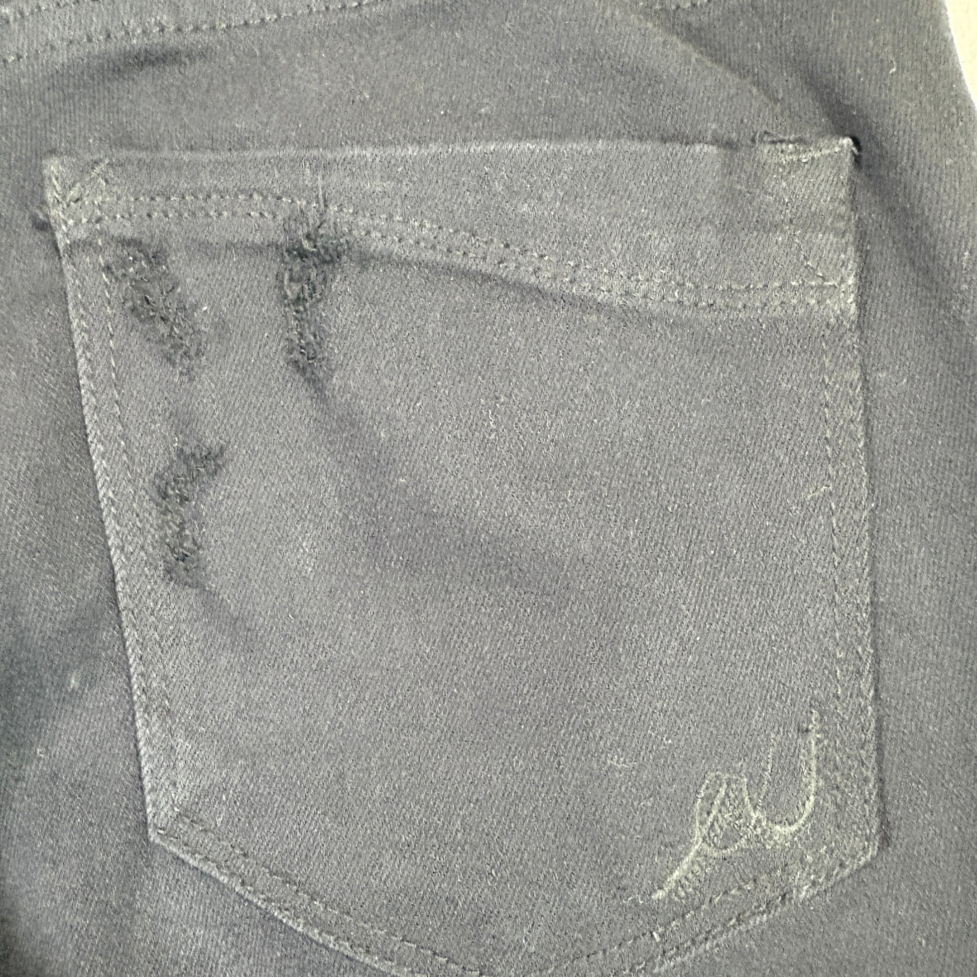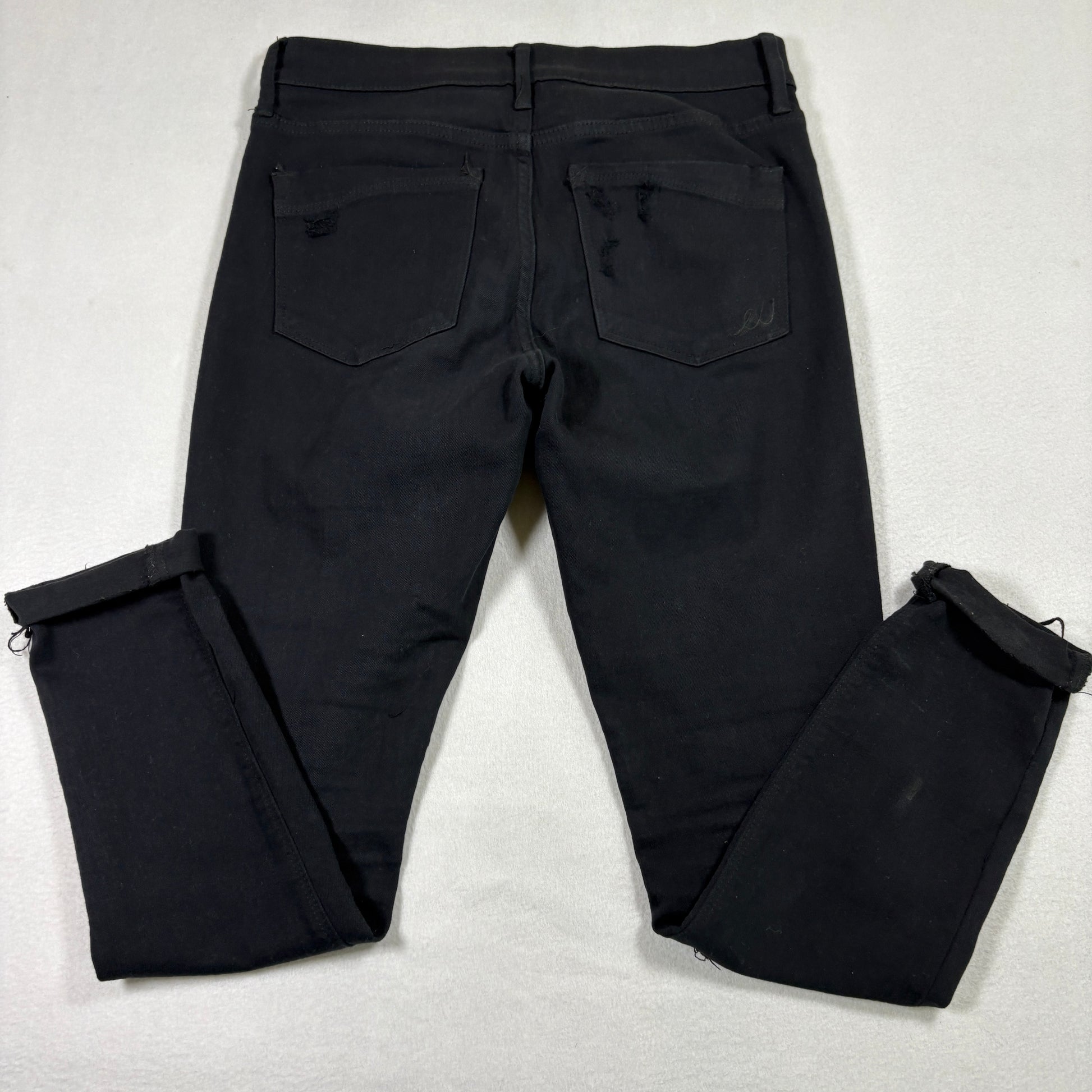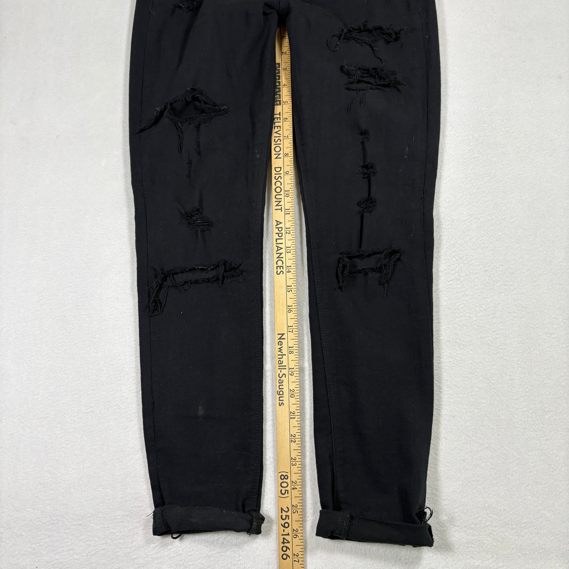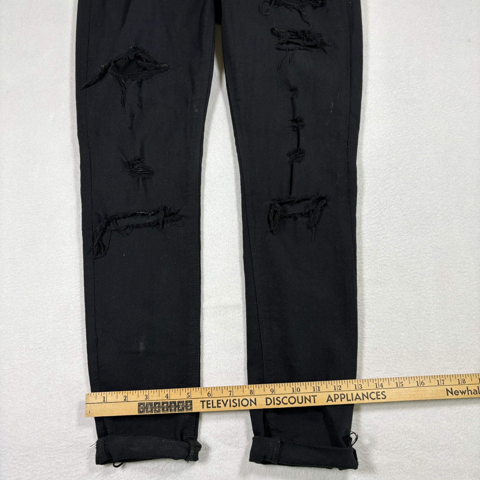 ✓ Details: Heavy distressing, ripped knees and thighs, edgy raw frays