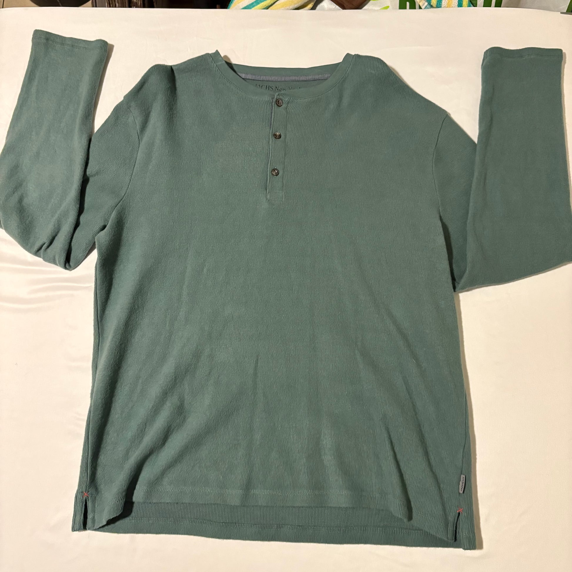 fashs new york henley waffle knit long sleeve shirt xl green cotton blend casual top