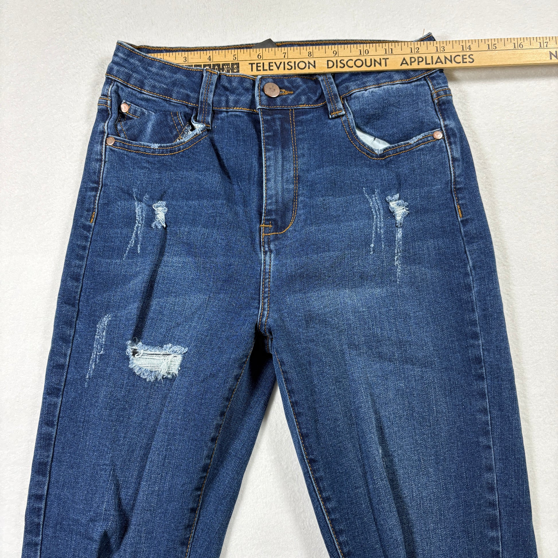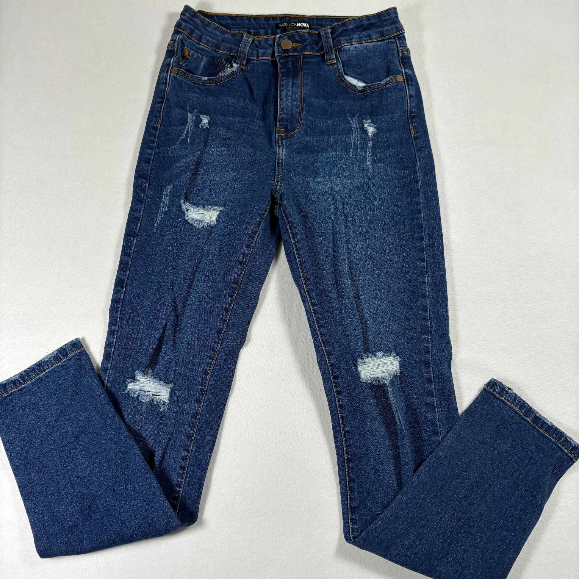 Fashion Nova Womens Jeans 7 Distressed Blue Denim Skinny Stretch Ripped Y2K