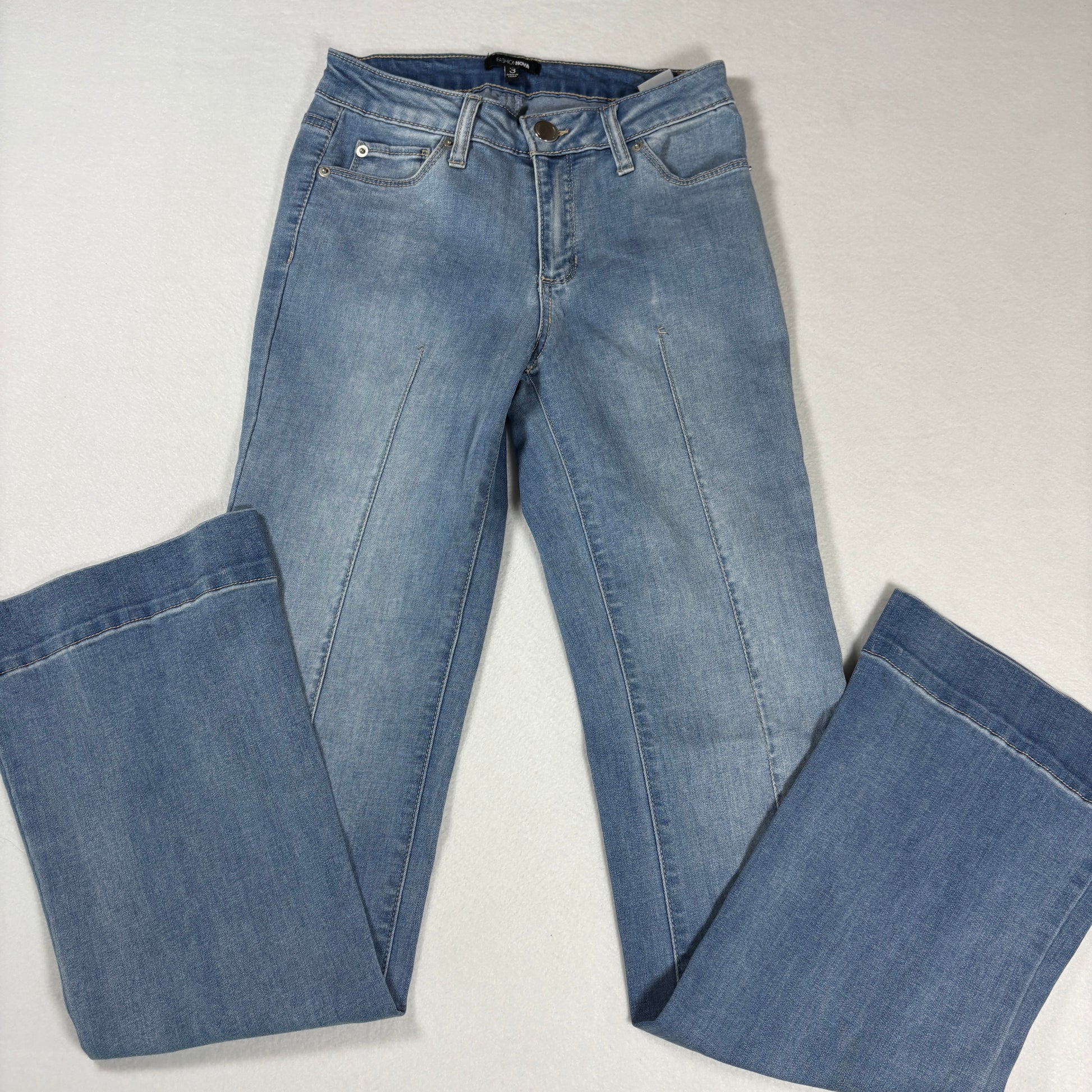 fashion nova jeans, womens flare jeans, y2k denim, bootcut jeans, light wash denim, size 3