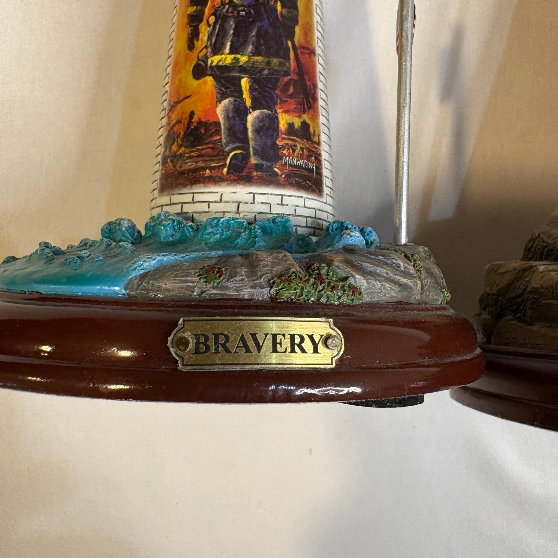 firefighter figurine, lighthouse collectible, Bravery statue, Honor lighthouse, fire department memorabilia, firefighter gift, emergency services decor, light-up lighthouse, firefighter tribute, resin lighthouse