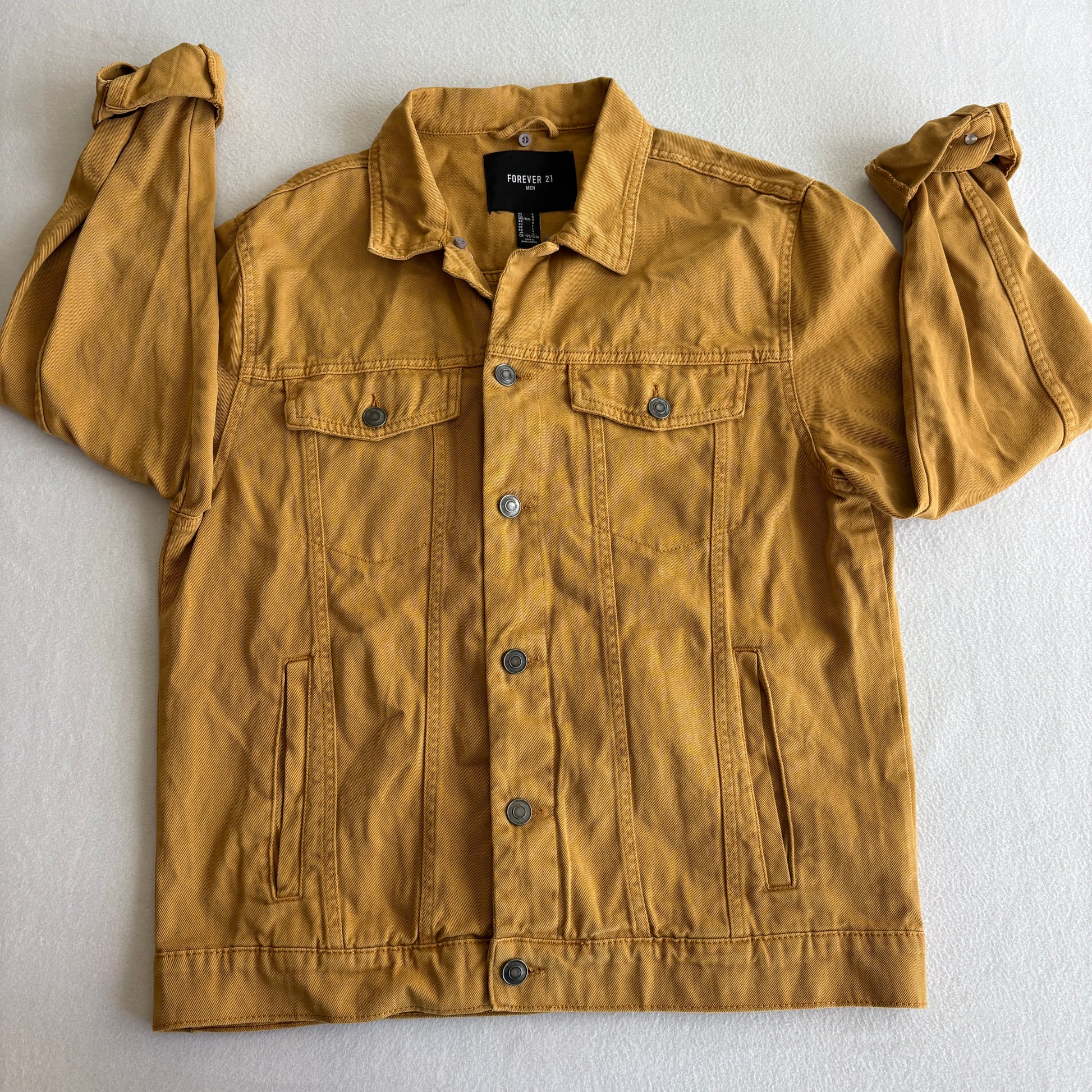 Forever 21 Denim Jacket Mens Large Mustard Yellow Casual Streetwear Retro Fit