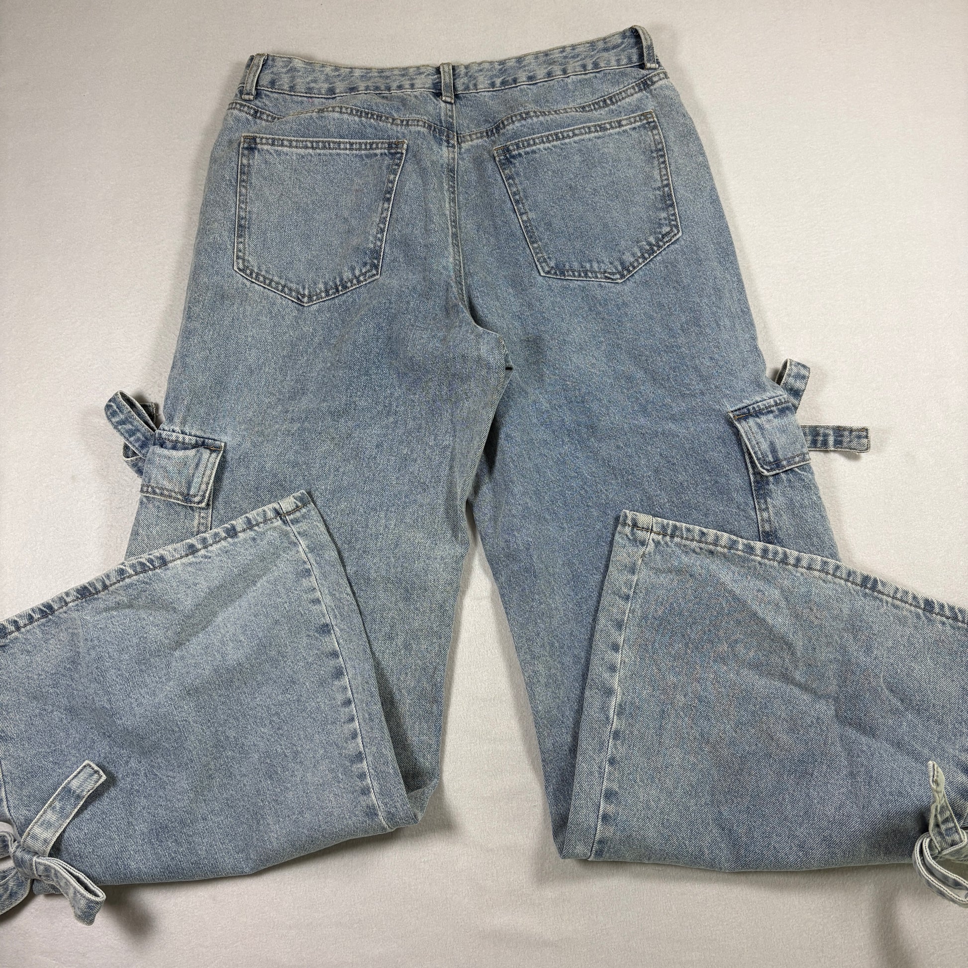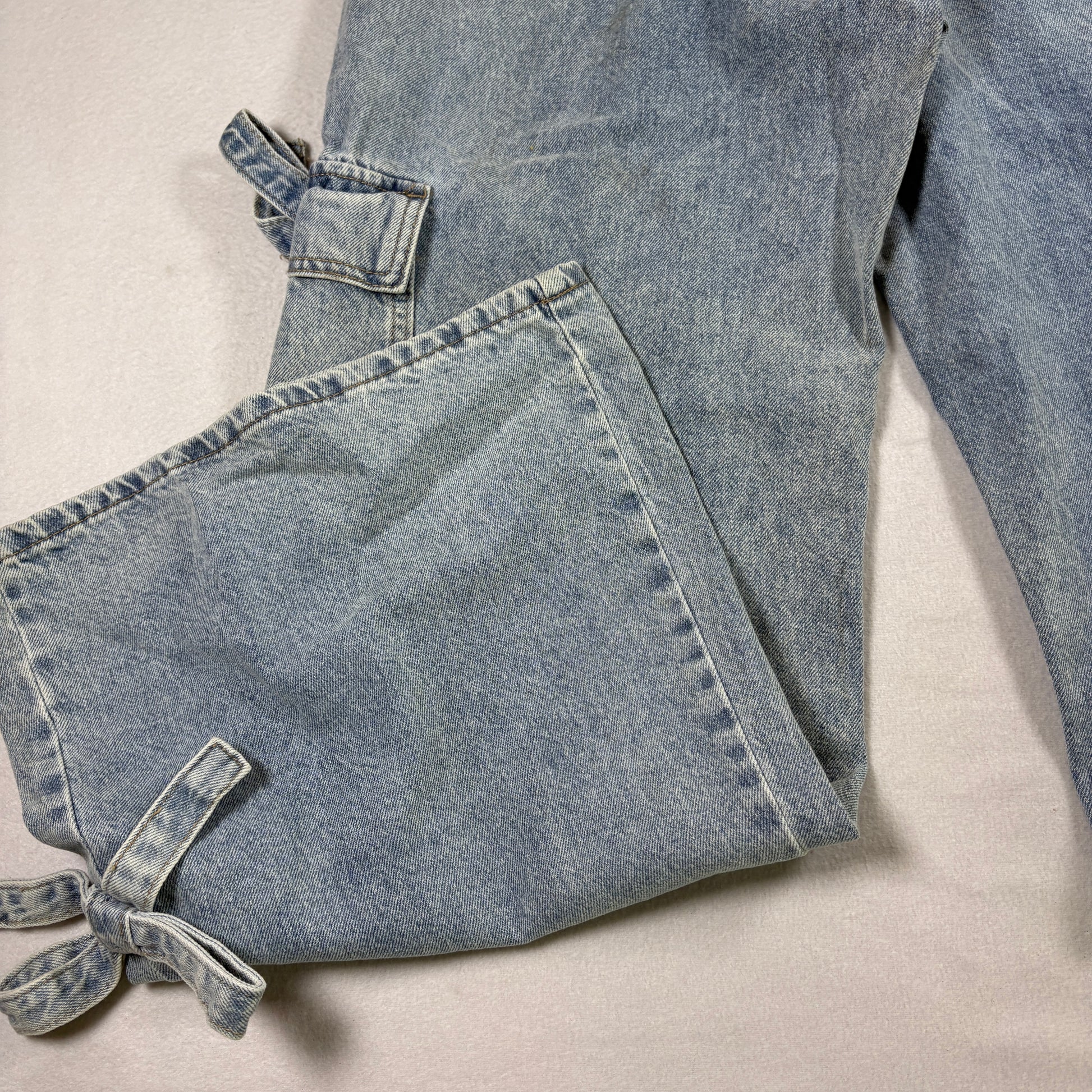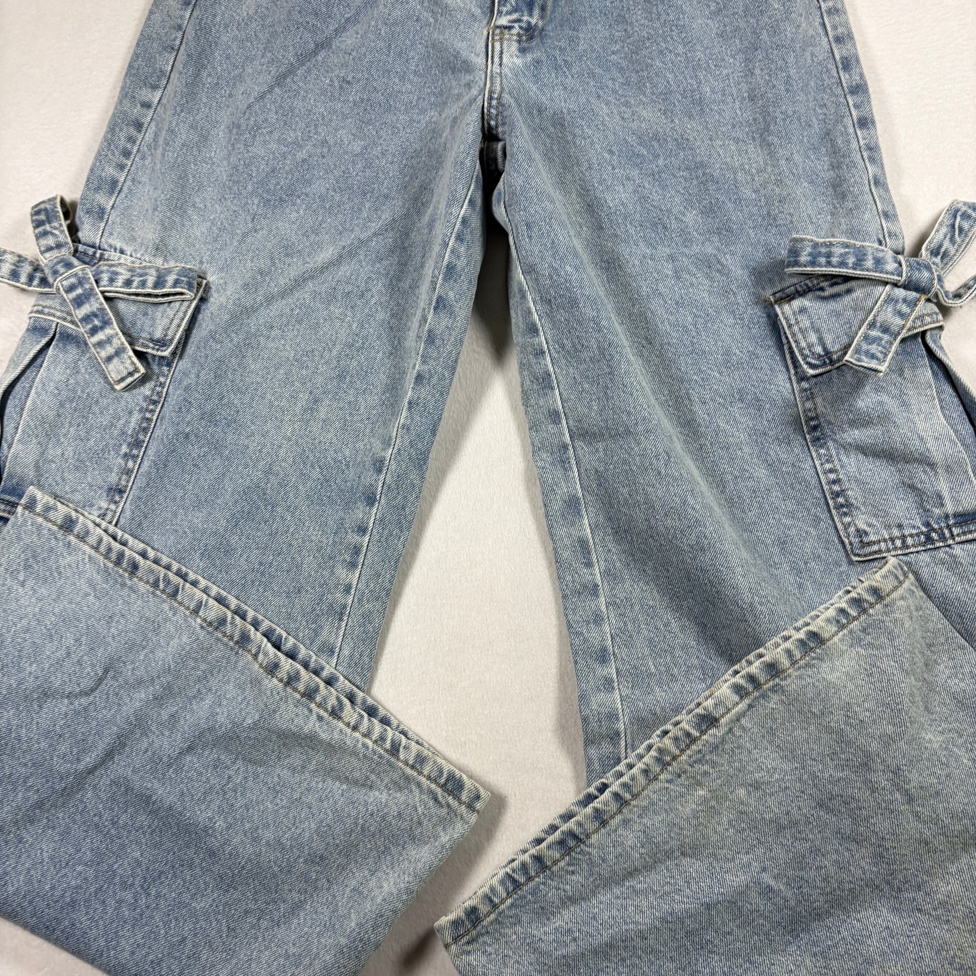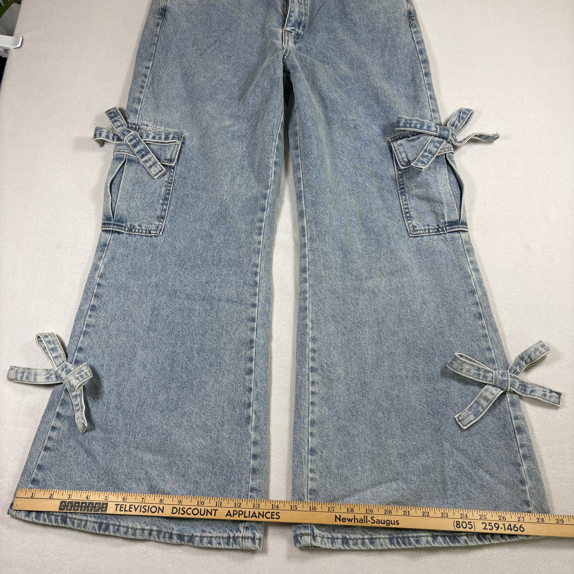 Forever 21 Womens Jeans 29 Y2K Baggy Cargo Bow Tie Flare Denim Grunge Distressed